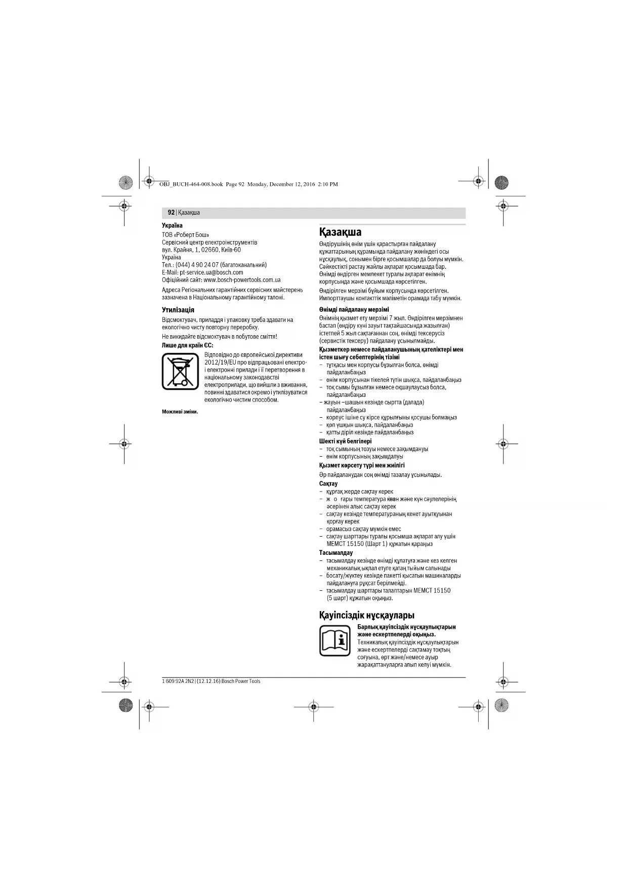 OBJ_BUCH-464-008.book Page 92 Monday, December 12, 2016 2:10 PMҚaзақша | 93 Bosch Power Tools 1 609 92A 2N2 | (12.12.16) Осы нұсқаулықты толық орындаңыз.