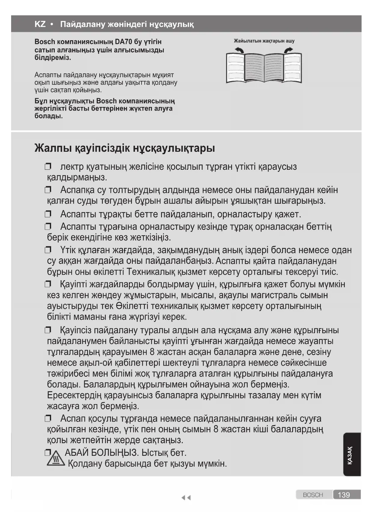 139 B O S C HҚАЗАҚ Жалпы қауіпсіздік нұсқаулықтары