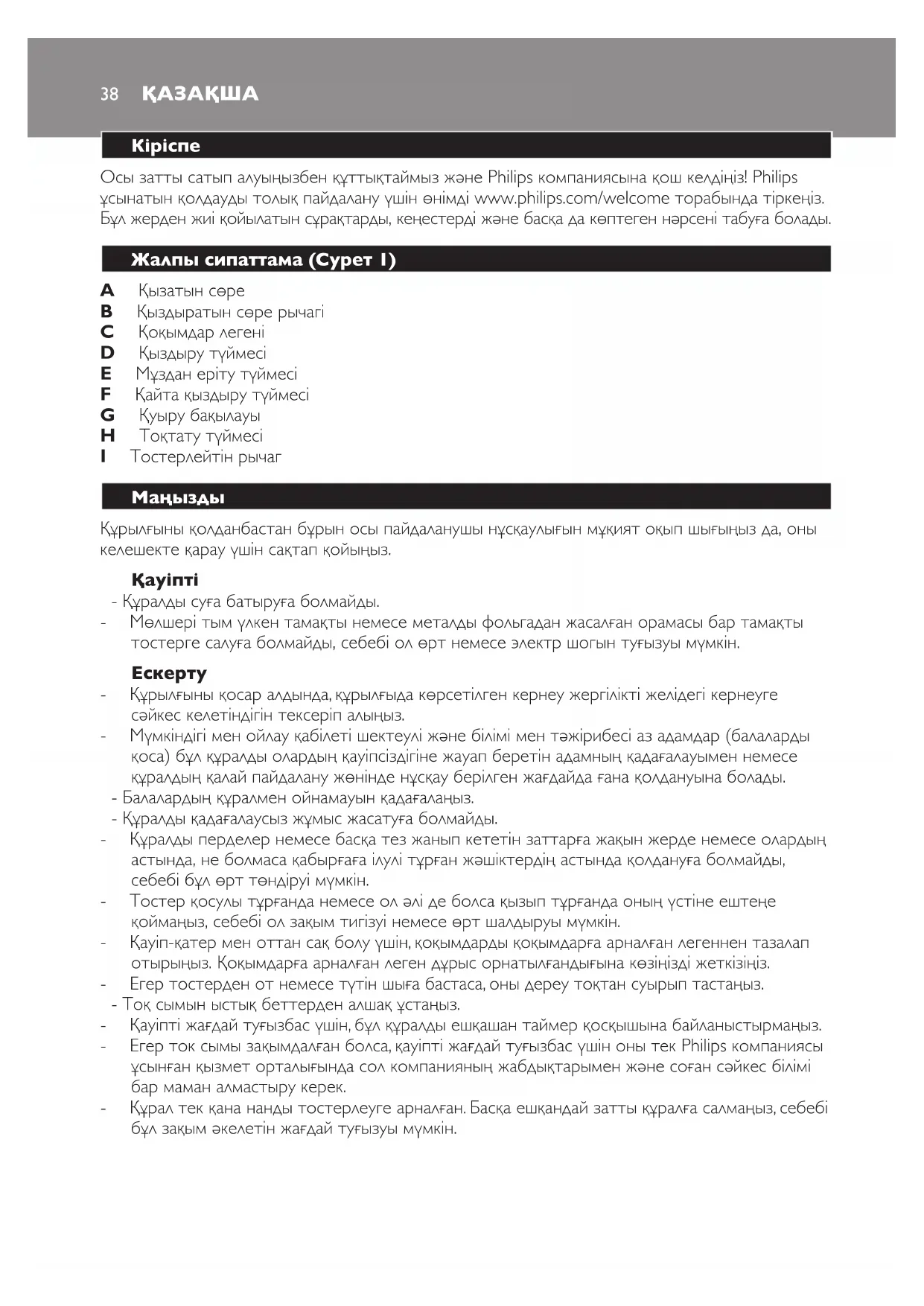Осы затты сатып алуыңызбен құттықтаймыз және Philips компаниясына қош келдіңіз! Philips