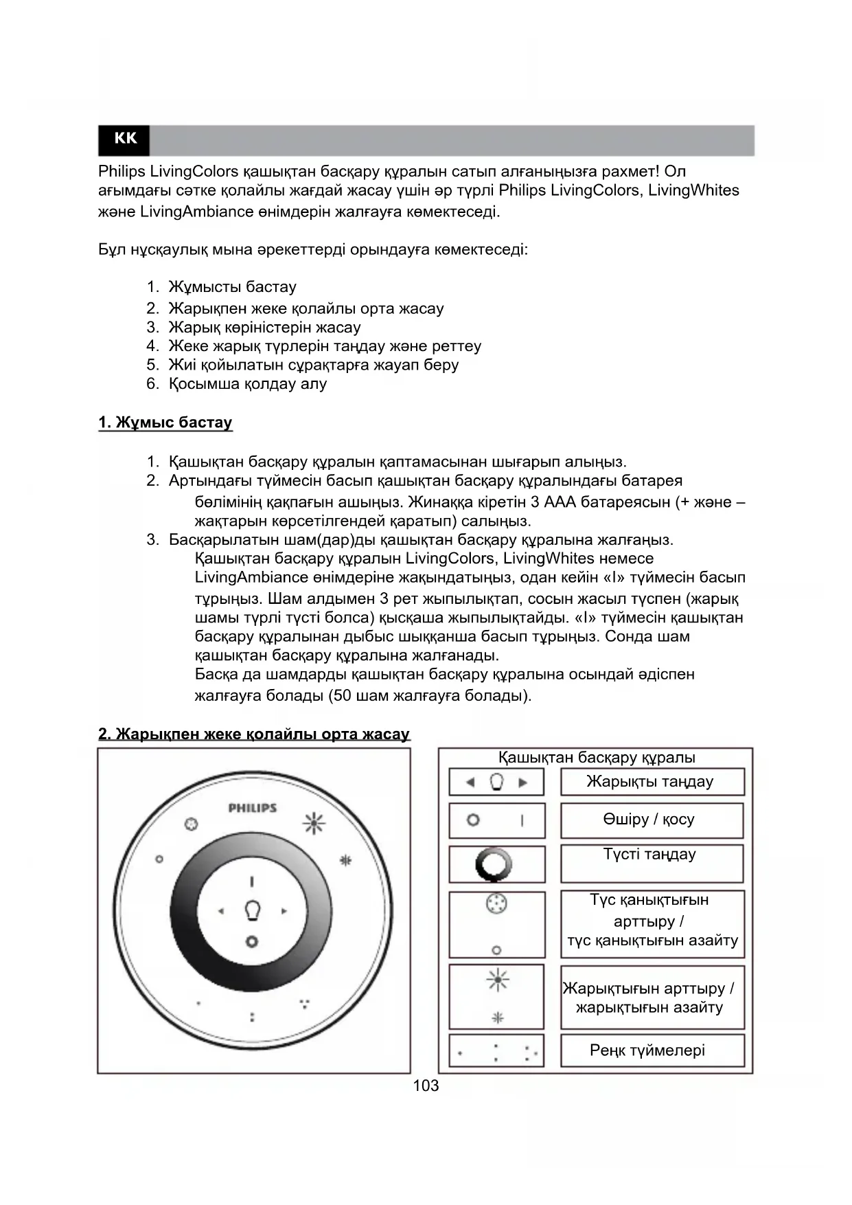 Philips LivingColors қашықтан басқару құралын сатып алғаныңызға рахмет! Ол