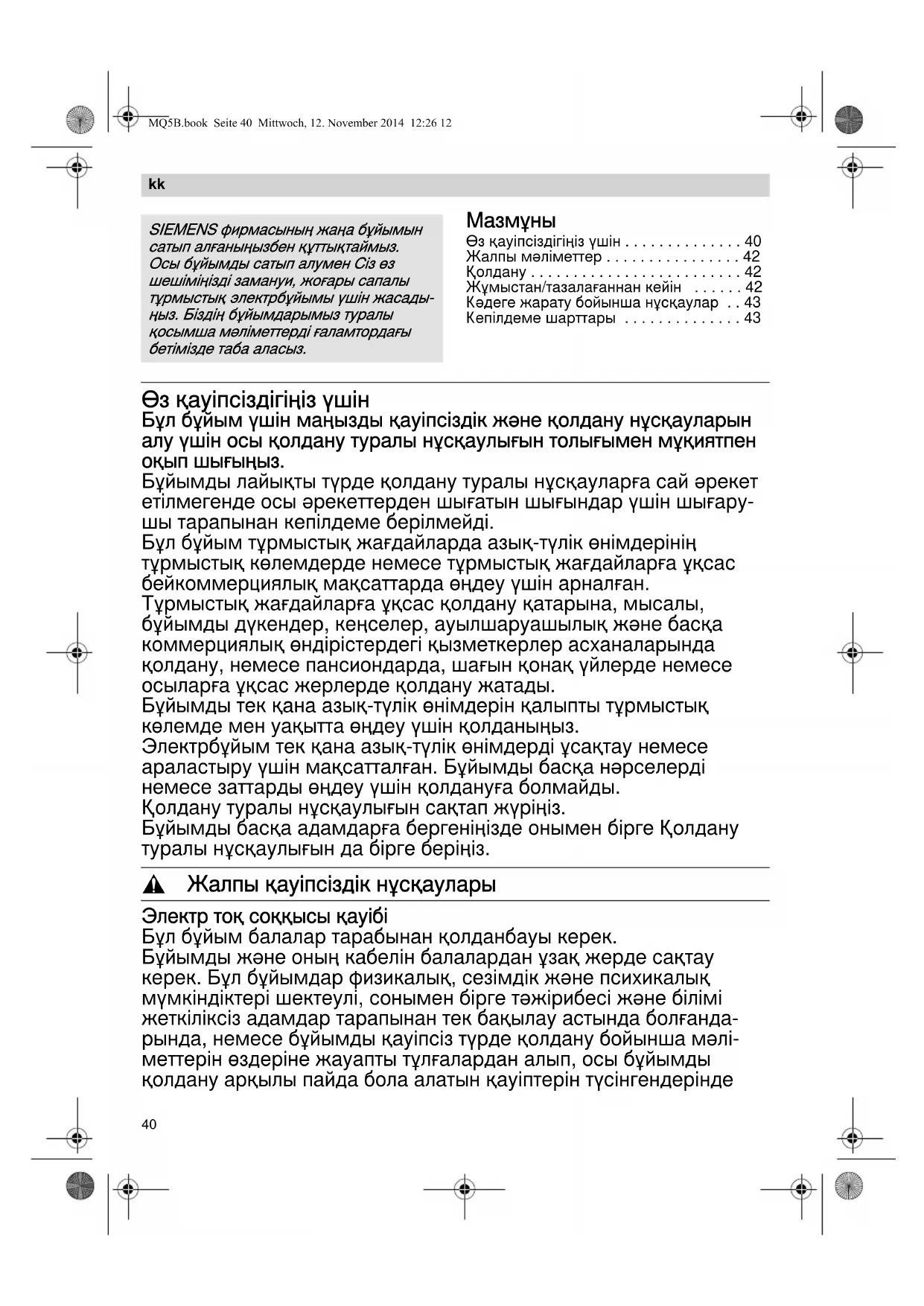ұзағырақ уақыт бойы қосылып қойылмауы лазым. MQ5B.book Seite 41 Mittwoch, 12. November 2014 12:26 1242