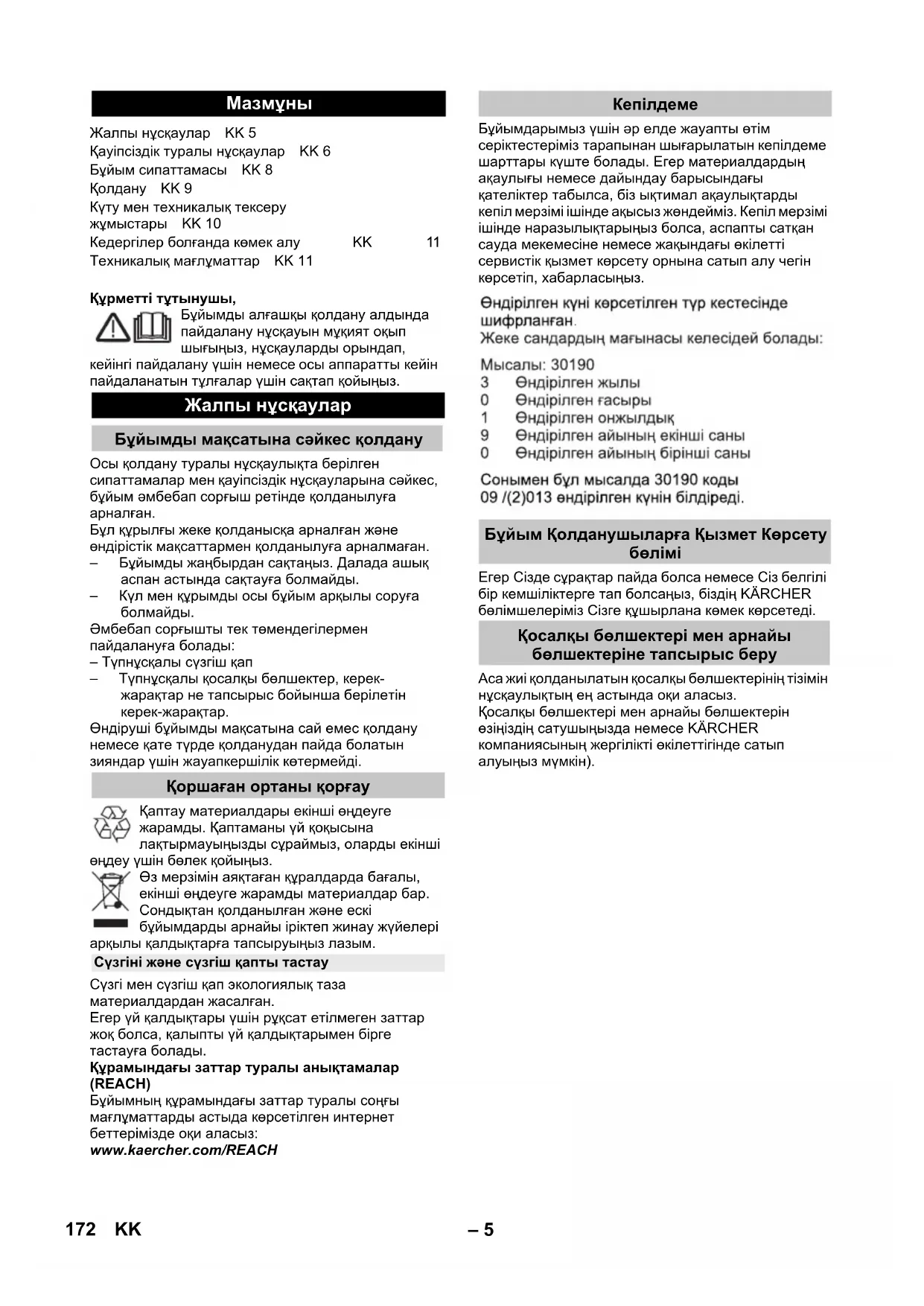 ПАЙДАЛАНУШЫ НҰСҚАУЛЫҒЫ MV 5 Premium Kärcher