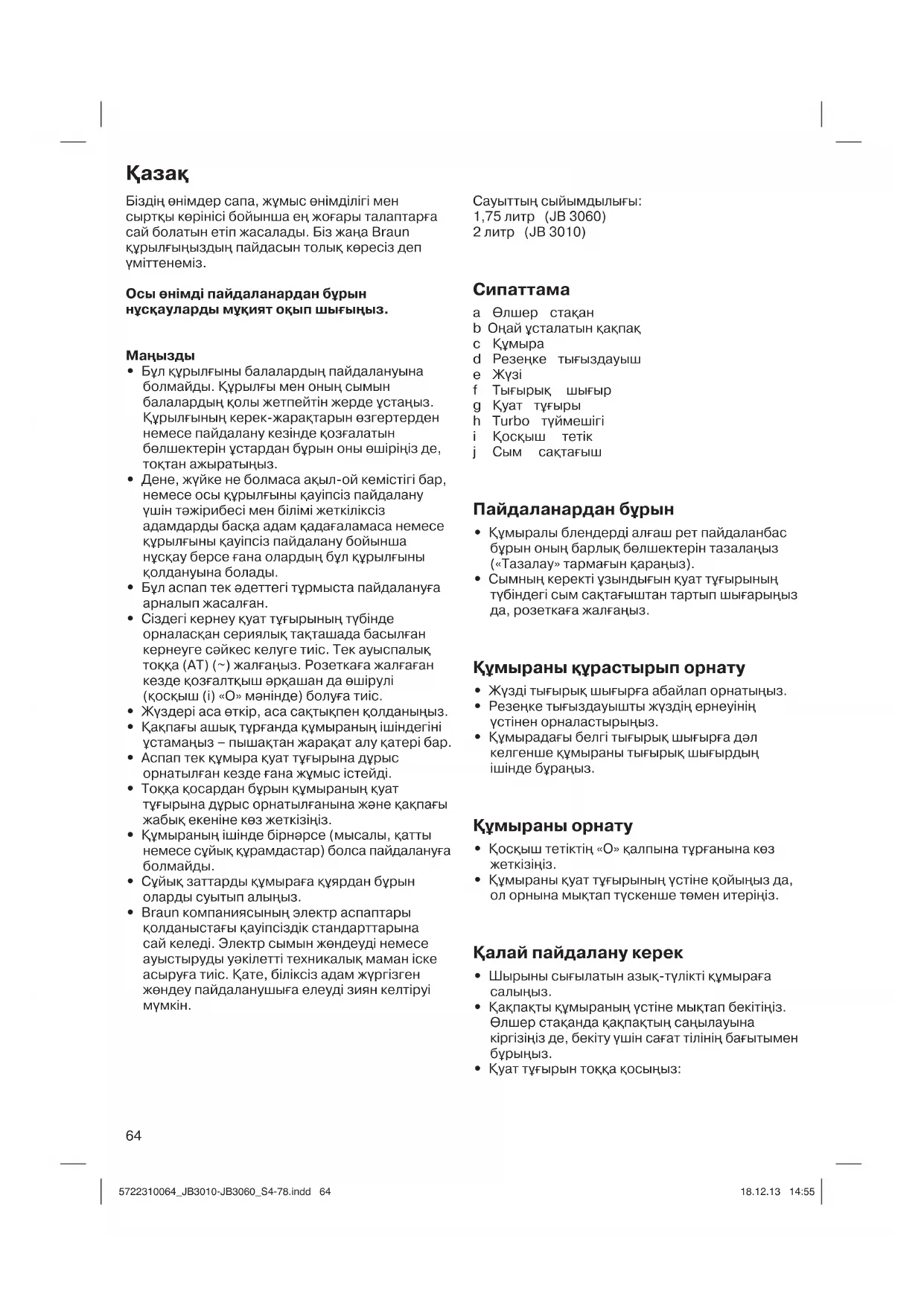 Téléchargez la notice de votre Блендер au format PDF gratuitement ! Retrouvez votre notice JB 3060 SW - BRAUN et reprennez votre appareil électronique en main. Sur cette page sont publiés tous les documents nécessaires à l'utilisation de votre appareil JB 3060 SW de la marque BRAUN.