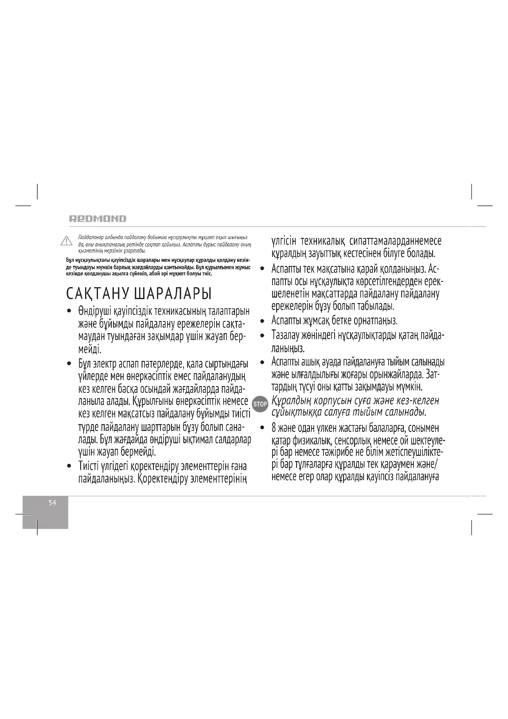 ПАЙДАЛАНУШЫ НҰСҚАУЛЫҒЫ RS724E Redmond
