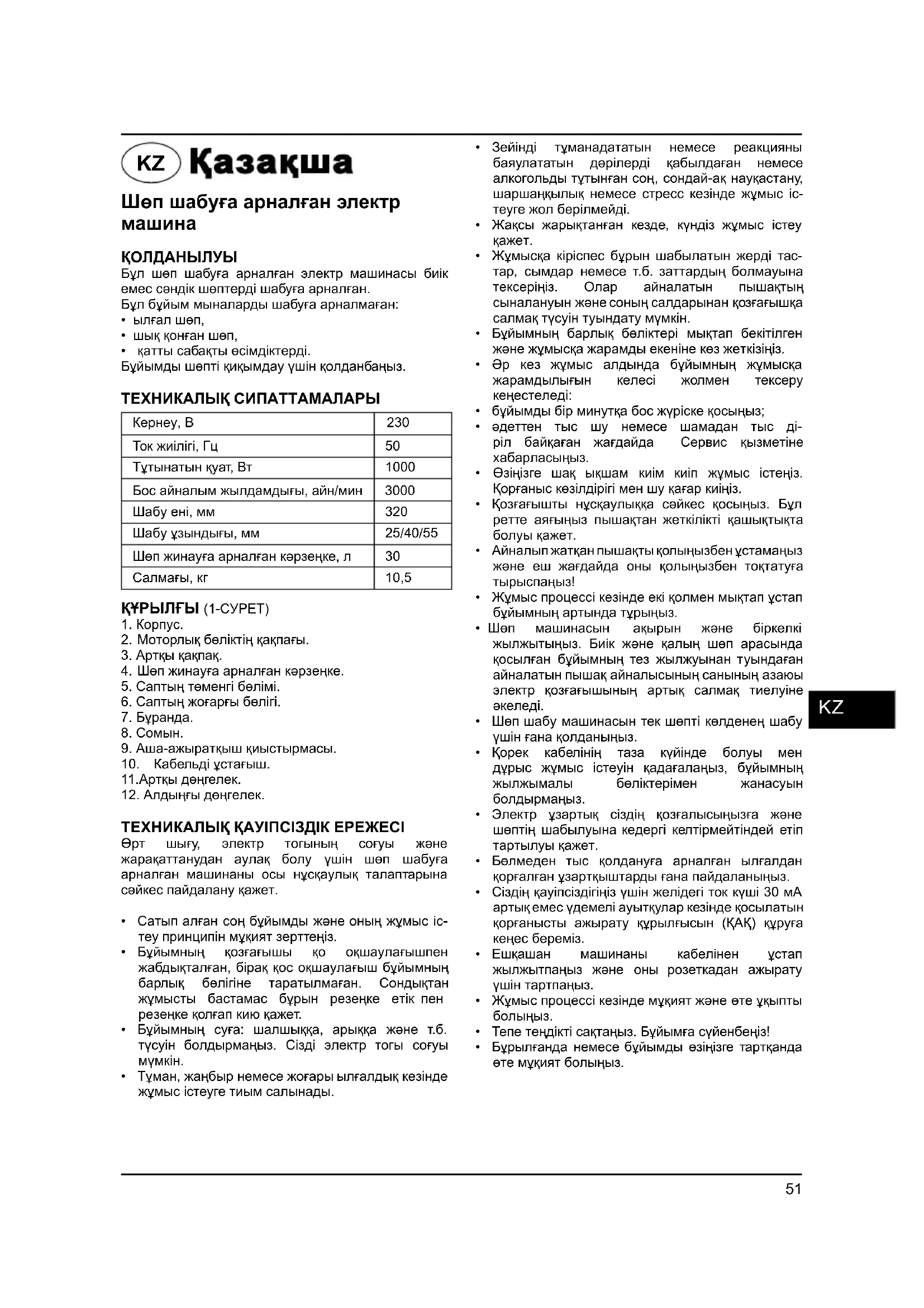 - Айналып жатқан пышақты қолыңызбен ұстамаңыз жəне еш жағдайда оны қолыңызбен тоқтатуға тырыспаңыз!