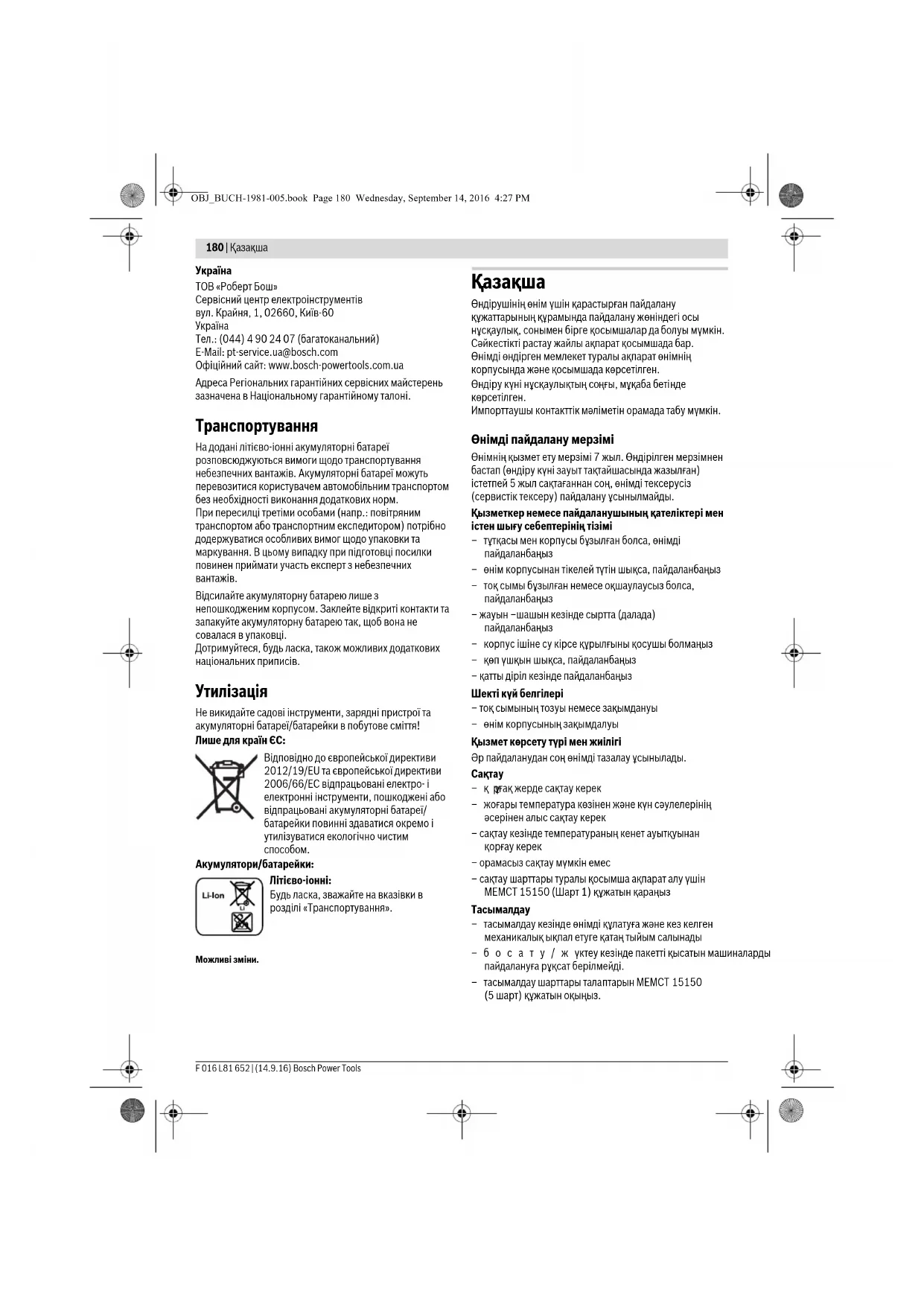 ПАЙДАЛАНУШЫ НҰСҚАУЛЫҒЫ ART 2618 Li + BOSCH