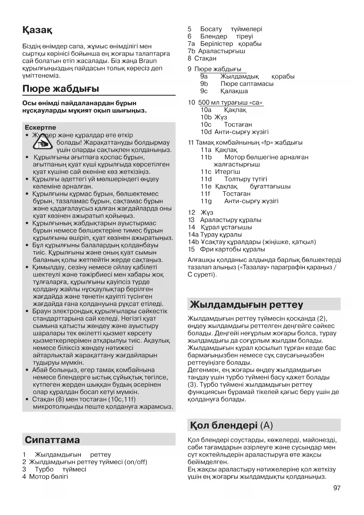 ПАЙДАЛАНУШЫ НҰСҚАУЛЫҒЫ Multiquick 5 Vario MQ 5037 Sauce+ BRAUN