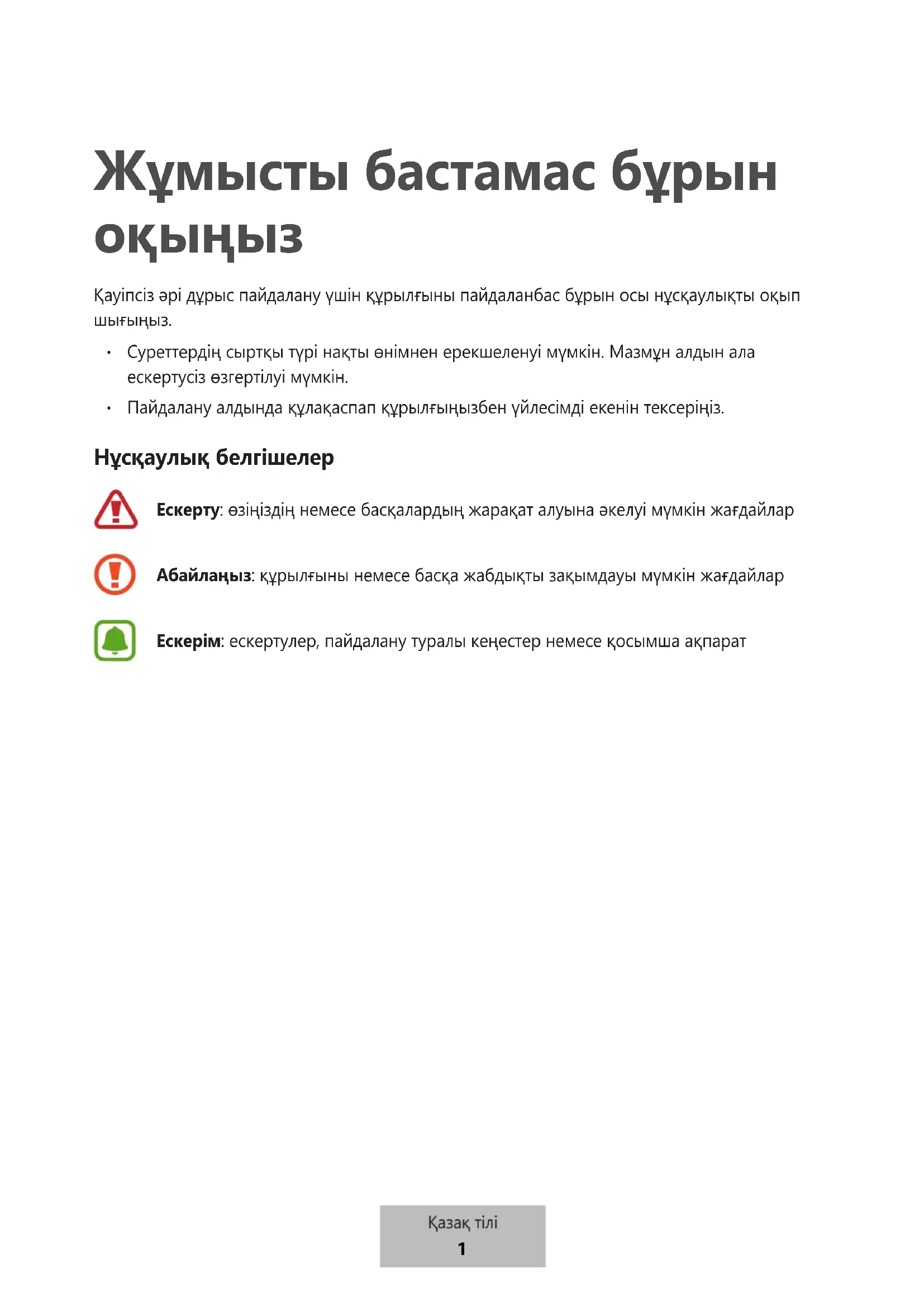 Қауіпсіз әрі дұрыс пайдалану үшін құрылғыны пайдаланбас бұрын осы нұсқаулықты оқып