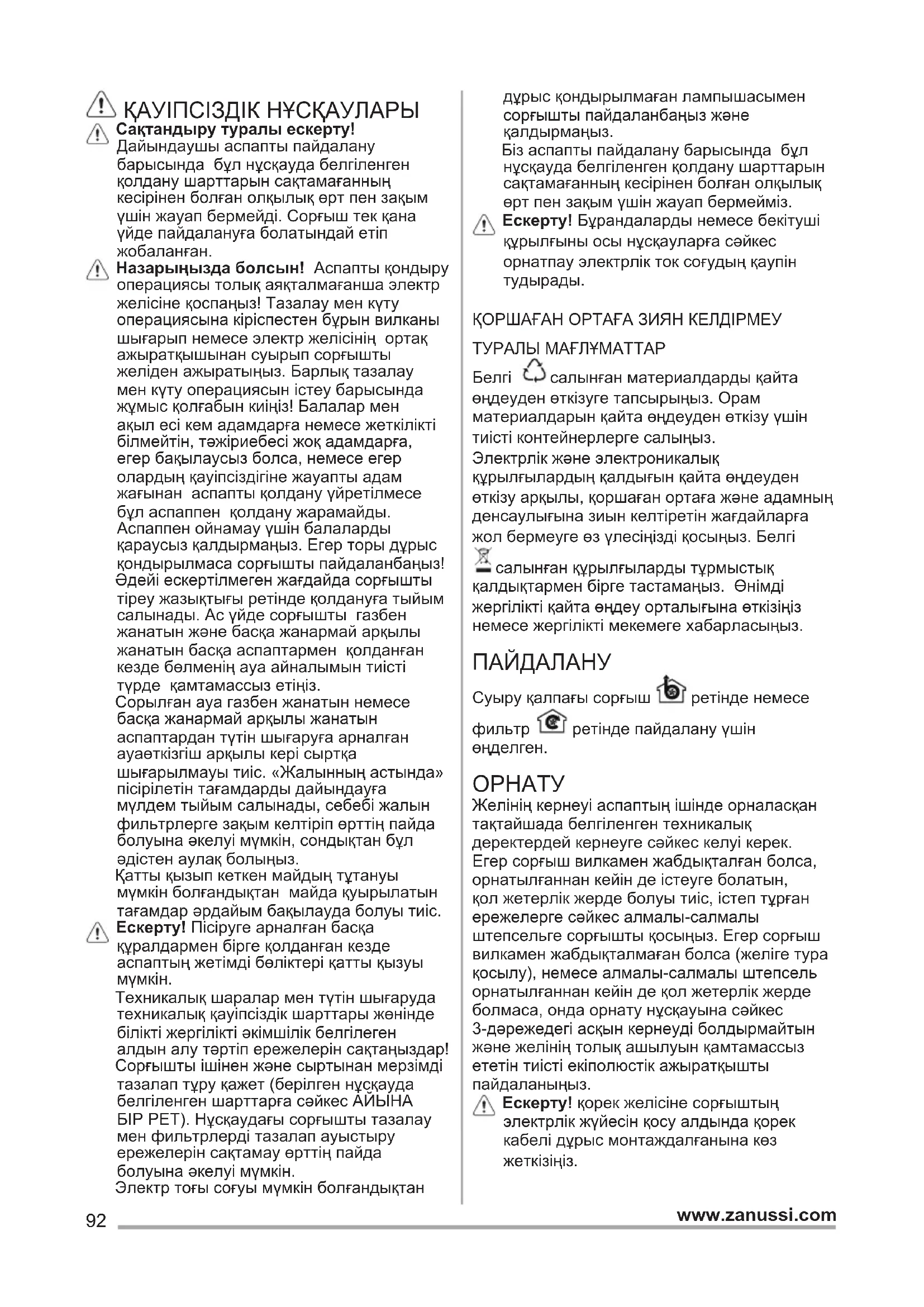 ПАЙДАЛАНУШЫ НҰСҚАУЛЫҒЫ ZHC92650XA ZANUSSI