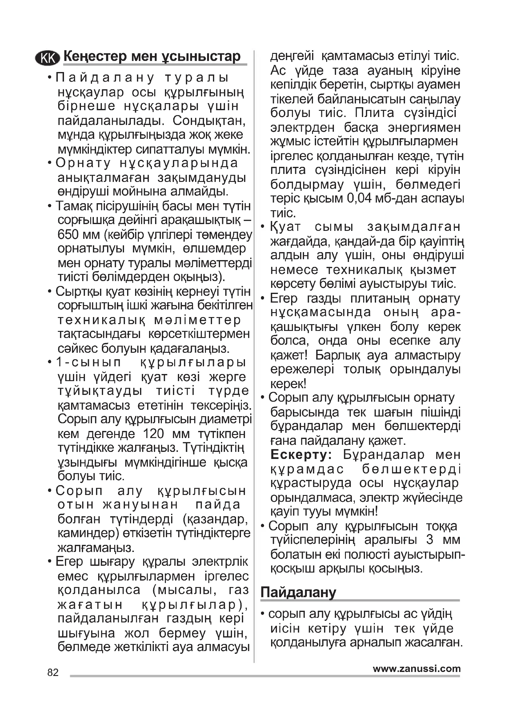 - сорып алу құрылғысы ас үйдің иісін кетіру үшін тек үйде қолданылуға арналып жасалған. KK83 www.zanussi.com