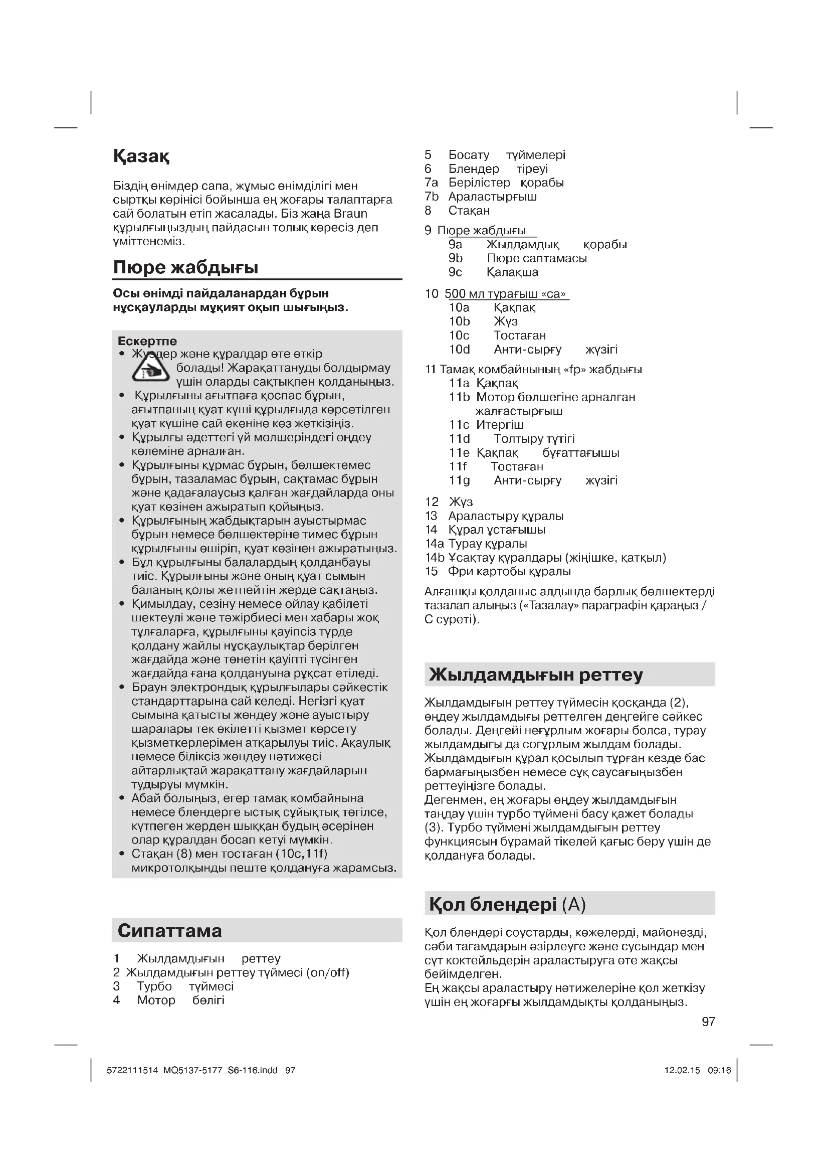 ПАЙДАЛАНУШЫ НҰСҚАУЛЫҒЫ Multiquick 5 Vario MQ 5137 Sauce+ BRAUN