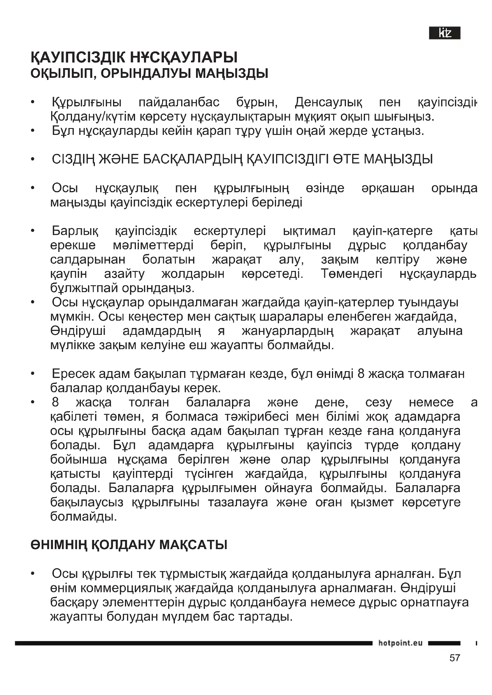 - Құрылғыныңсатылғанай-күні Басқапайдалыақпаратпенжаңалықтардыwww.hotpoint- ariston.ru веб-сайтының «Қызмет көрсету» тарауынан көреаласыз.65 itbg ИНСТРУКЦИИ ЗА БЕЗОПАСНОСТ ВАЖНО! ДА СЕ ПРОЧЕТАТ И СПАЗВАТ