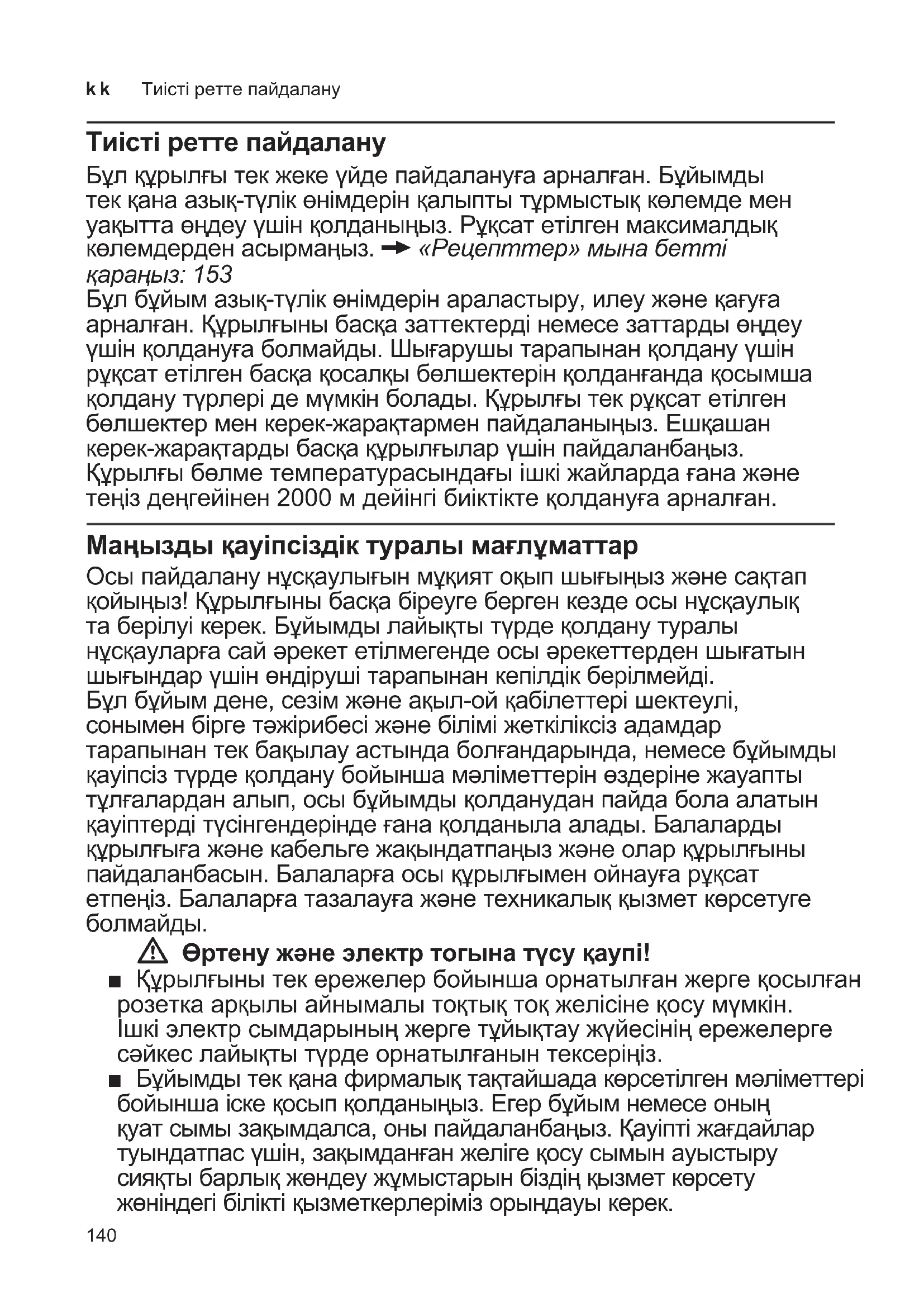 - Тиісті ретте пайдалану p. 140