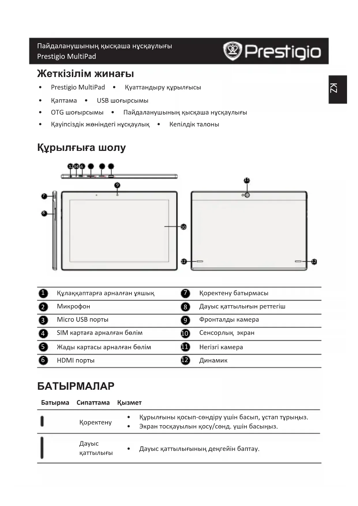 ПАЙДАЛАНУШЫ НҰСҚАУЛЫҒЫ MultiPad 4 Diamond 10.1 3G PRESTIGIO