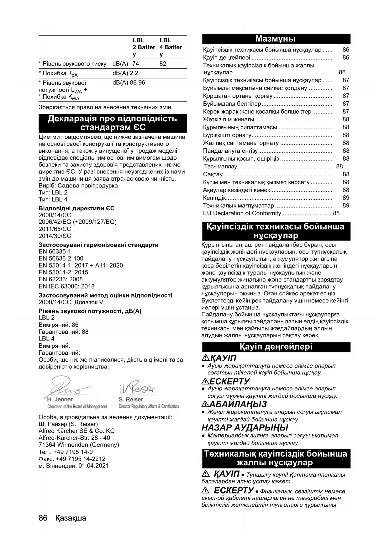 ПАЙДАЛАНУШЫ НҰСҚАУЛЫҒЫ LBL 2 Kärcher