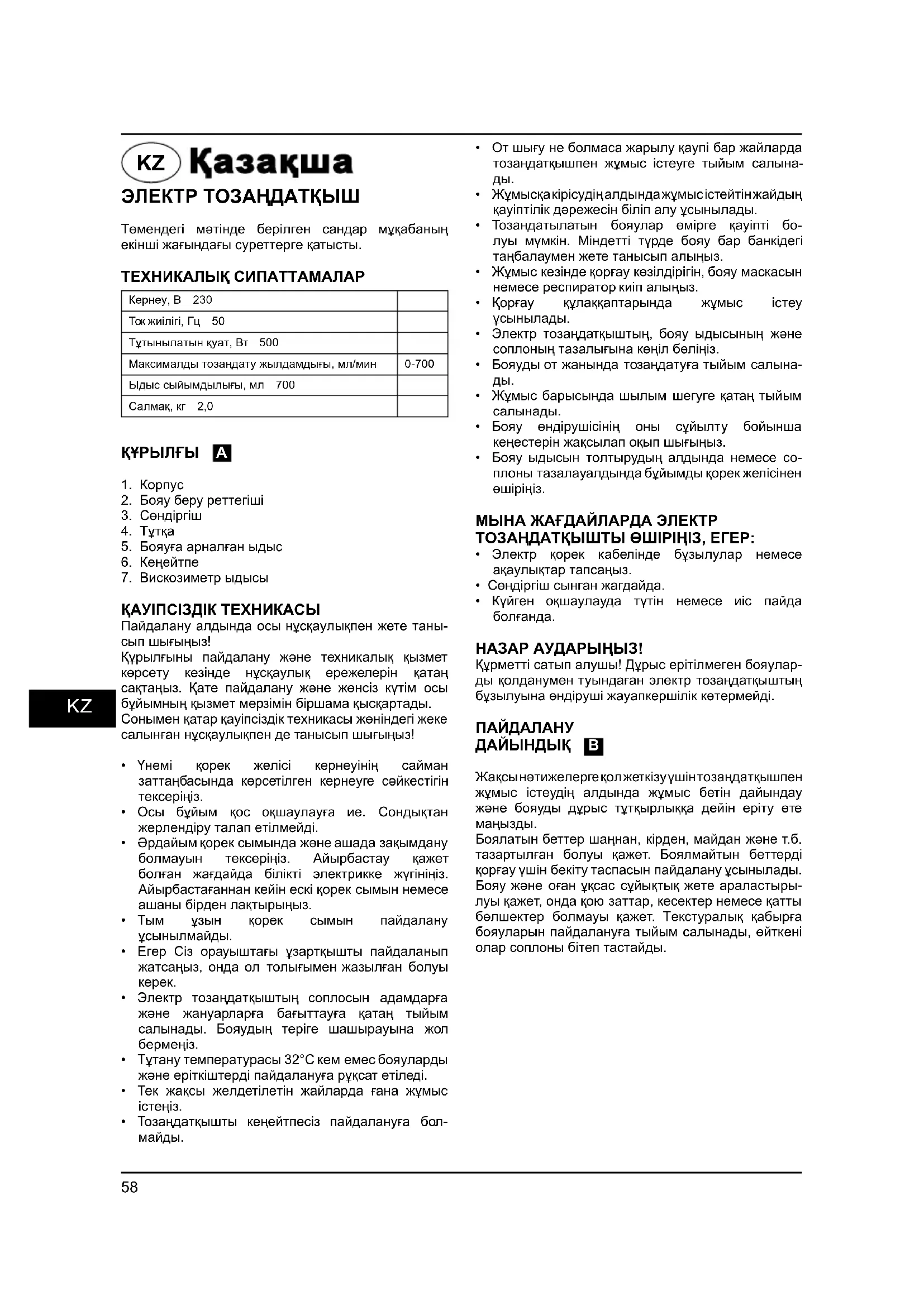 ПАЙДАЛАНУШЫ НҰСҚАУЛЫҒЫ BFP500 Bort