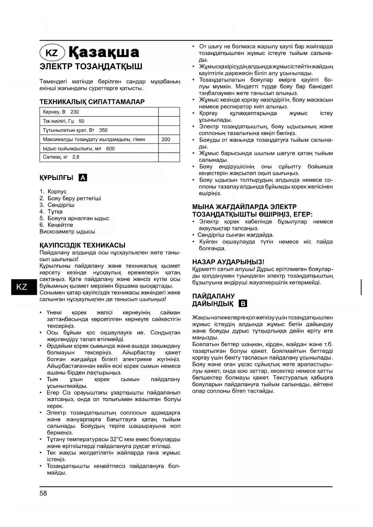 - Электр тозандатқыштың соплосын адамдарға және жануарларға бағыттауға қатаң тыйым салынады. Бояудың теріге шашырауына жол бермеңіз.