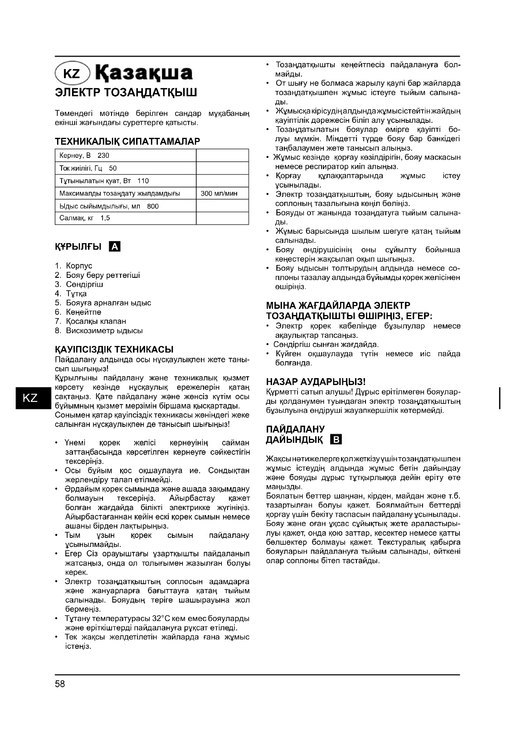 BFP110N - боя спрейі Bort - Тегін пайдаланушы нұсқаулығы