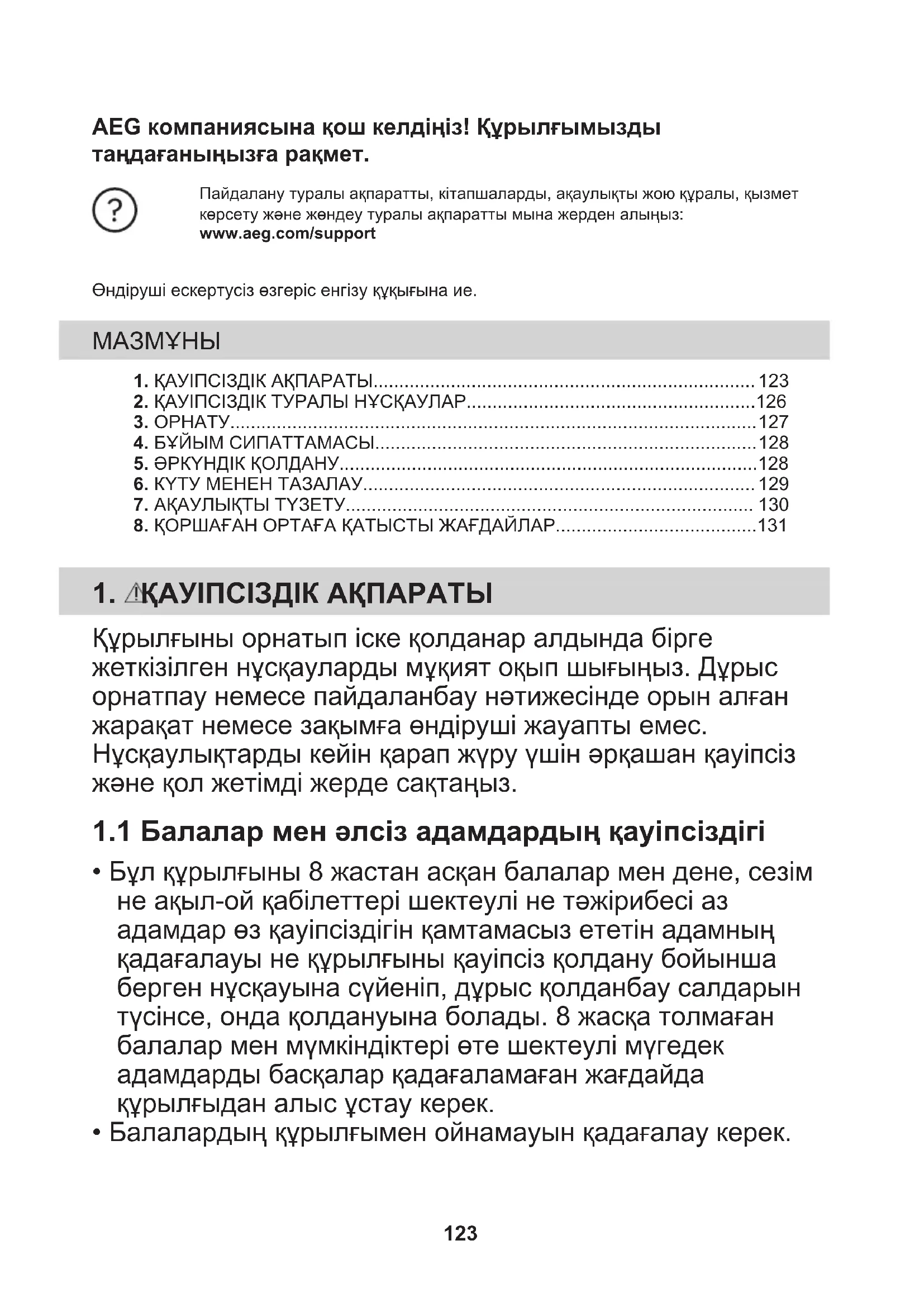 ПАЙДАЛАНУШЫ НҰСҚАУЛЫҒЫ AWH9416AM AEG