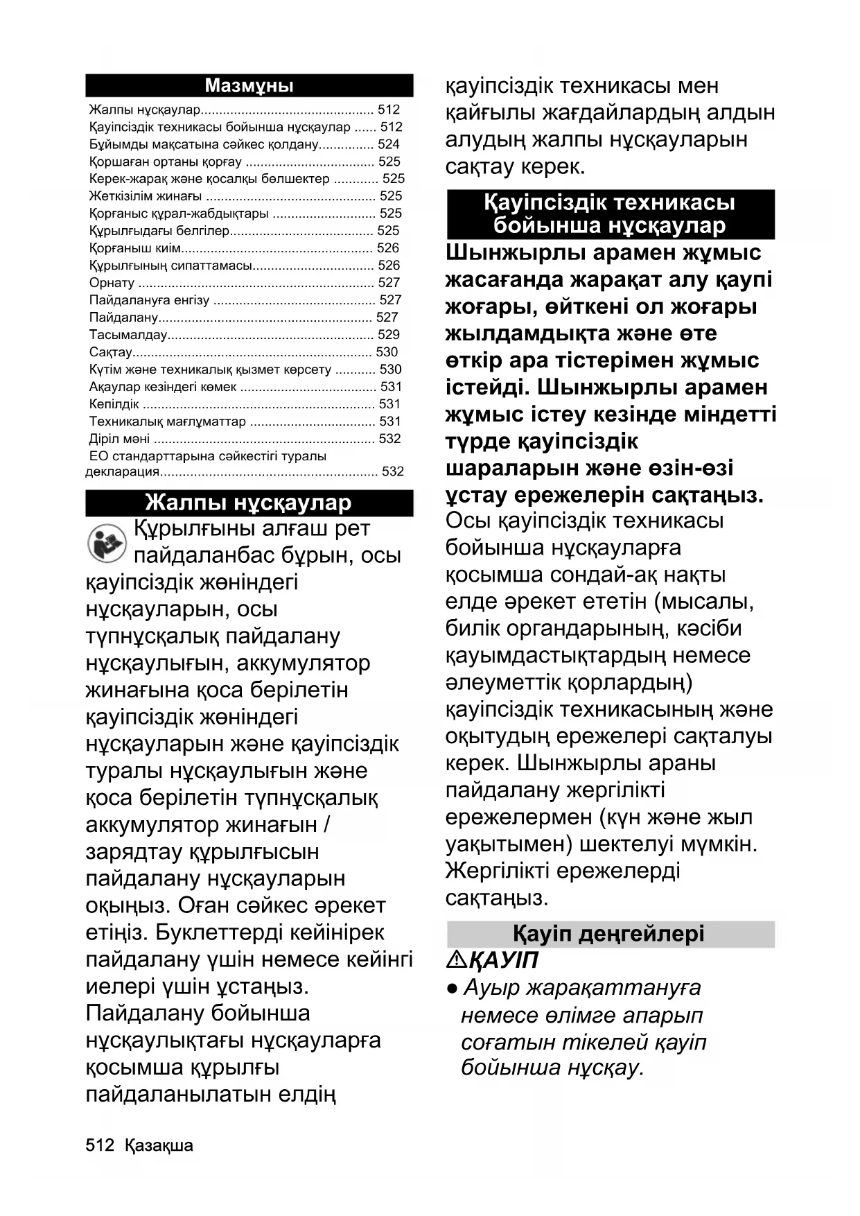 - Қауіпсіздік техникасы бойынша нұсқаулар p. 512