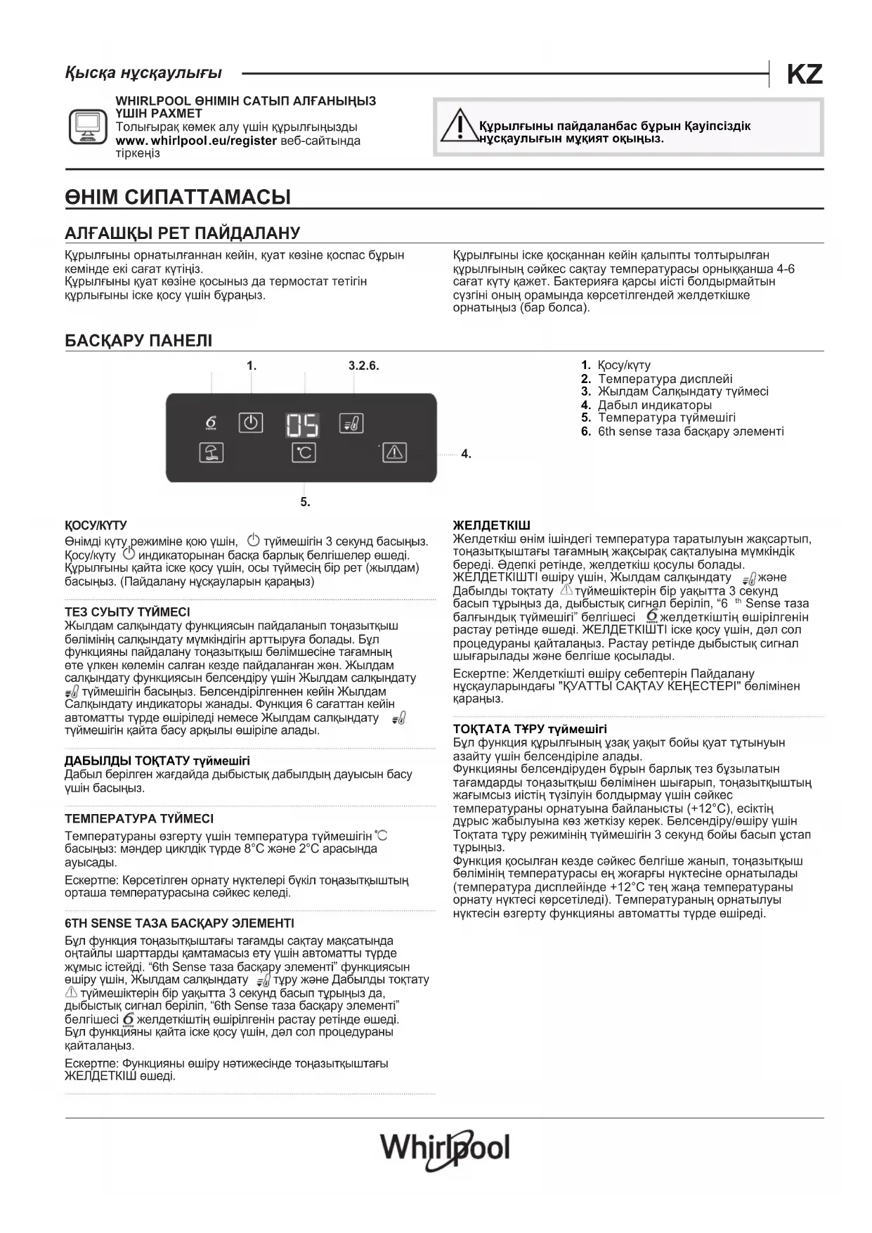 ПАЙДАЛАНУШЫ НҰСҚАУЛЫҒЫ SW8 AM2C KAR WHIRLPOOL