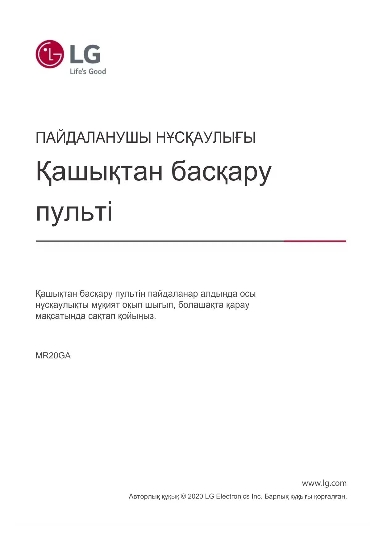 ПАЙДАЛАНУШЫ НҰСҚАУЛЫҒЫ MR20GA LG