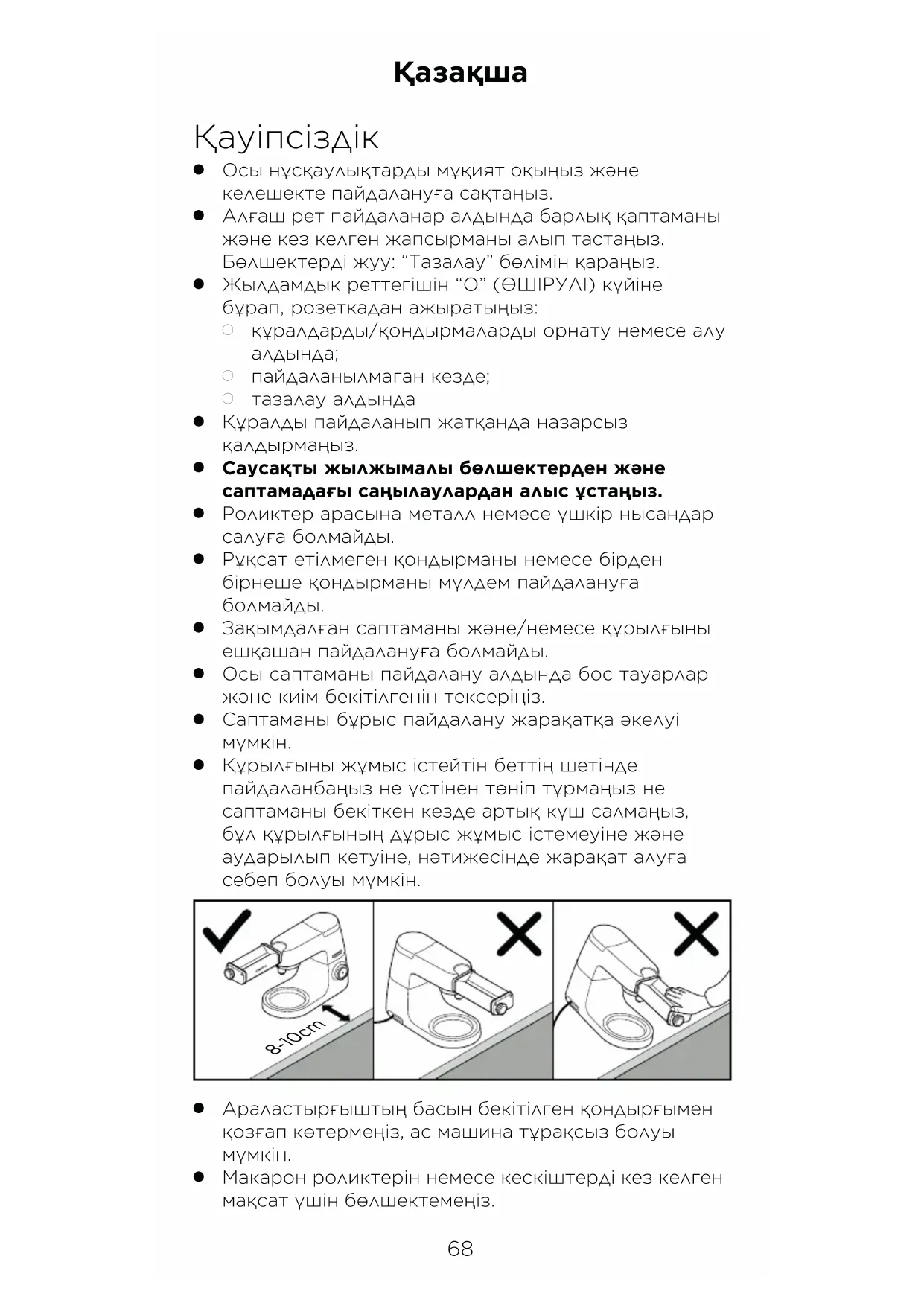Қосымша қауіпсіздік ескертулері мен таба қолданысын асүй машинасы нұсқаулығынан