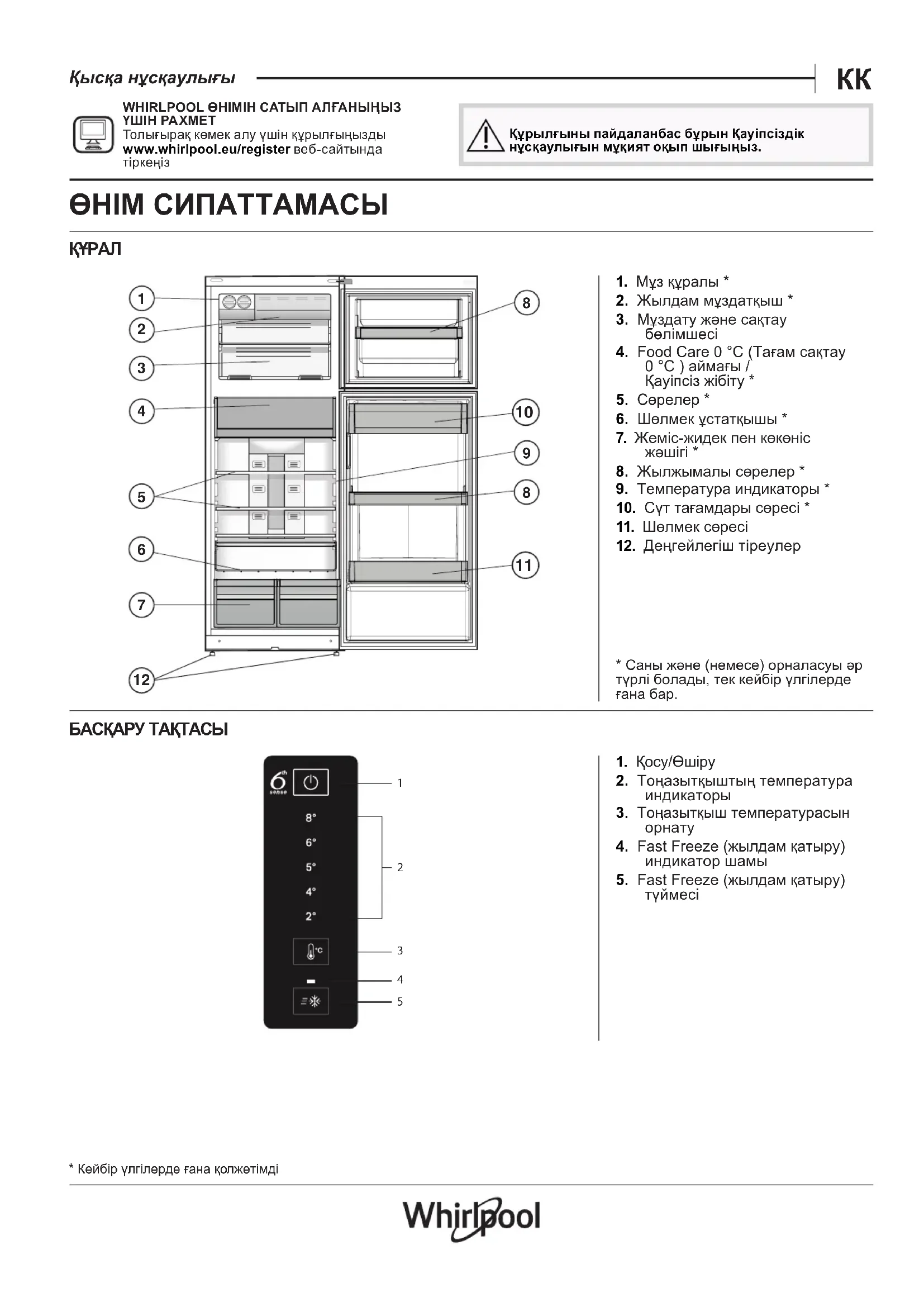 WHIRLPOOL ӨНІМІН САТЫП АЛҒАНЫҢЫЗ ҮШІН РАХМЕТ Толығырақ көмек алу үшін құрылғыңызды www. whirlpool .eu/register веб-сайтында