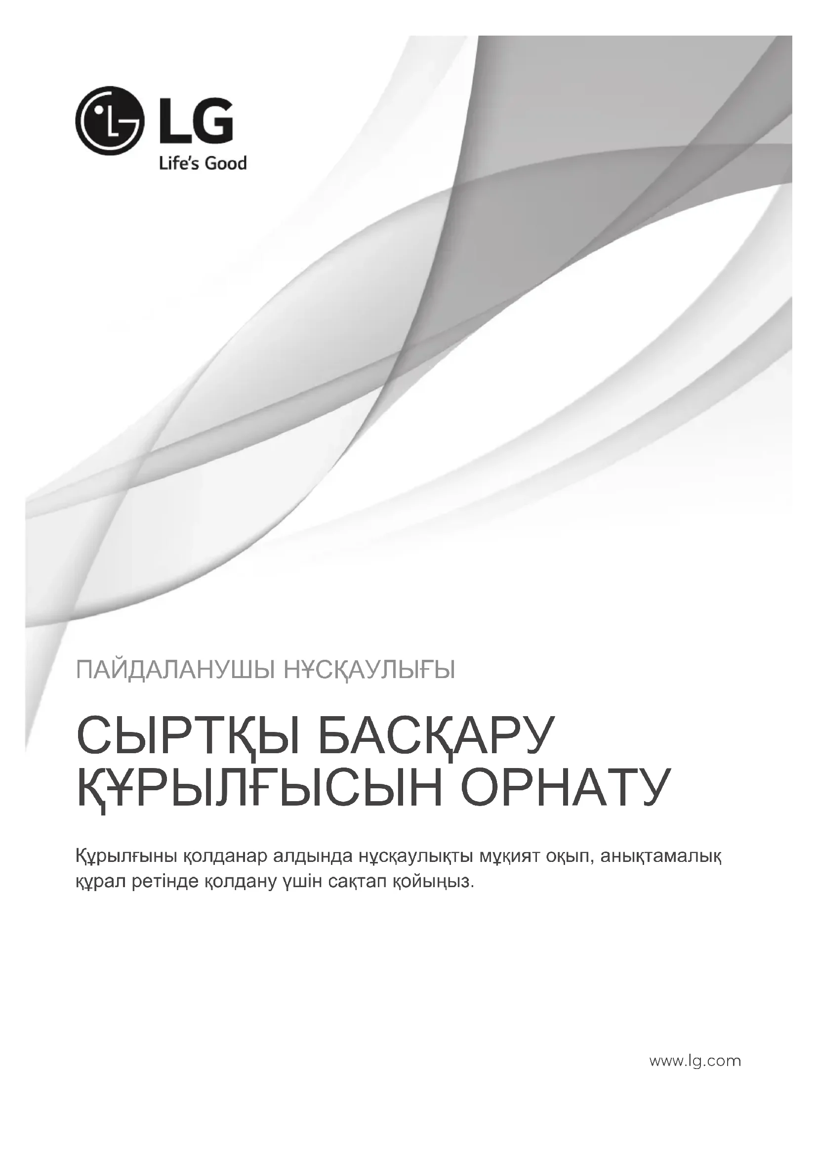 (Command: j u) (в зависимости от модели) ► Автоматическая настройка положения картинки и минимизация дрожания изображения. Эта функция работает в следующем режиме: RGB (PC). Transmission [j][u][ ][Set ID][ ][Data][Cr] Данные 01: Запуск Автонастройки Ack [u][ ][Set ID][ ][OK/NG][Data][x]ПАЙДАЛАНУШЫ НҰСҚАУЛЫҒЫ СЫРТҚЫ БАСҚАРУ ҚҰРЫЛҒЫСЫН ОРНАТУ Құрылғыны қолданар алдында нұсқаулықты мұқият оқып, анықтамалық құрал ретінде қолдану үшін сақтап қойыңыз. www.lg.com2 KAZ