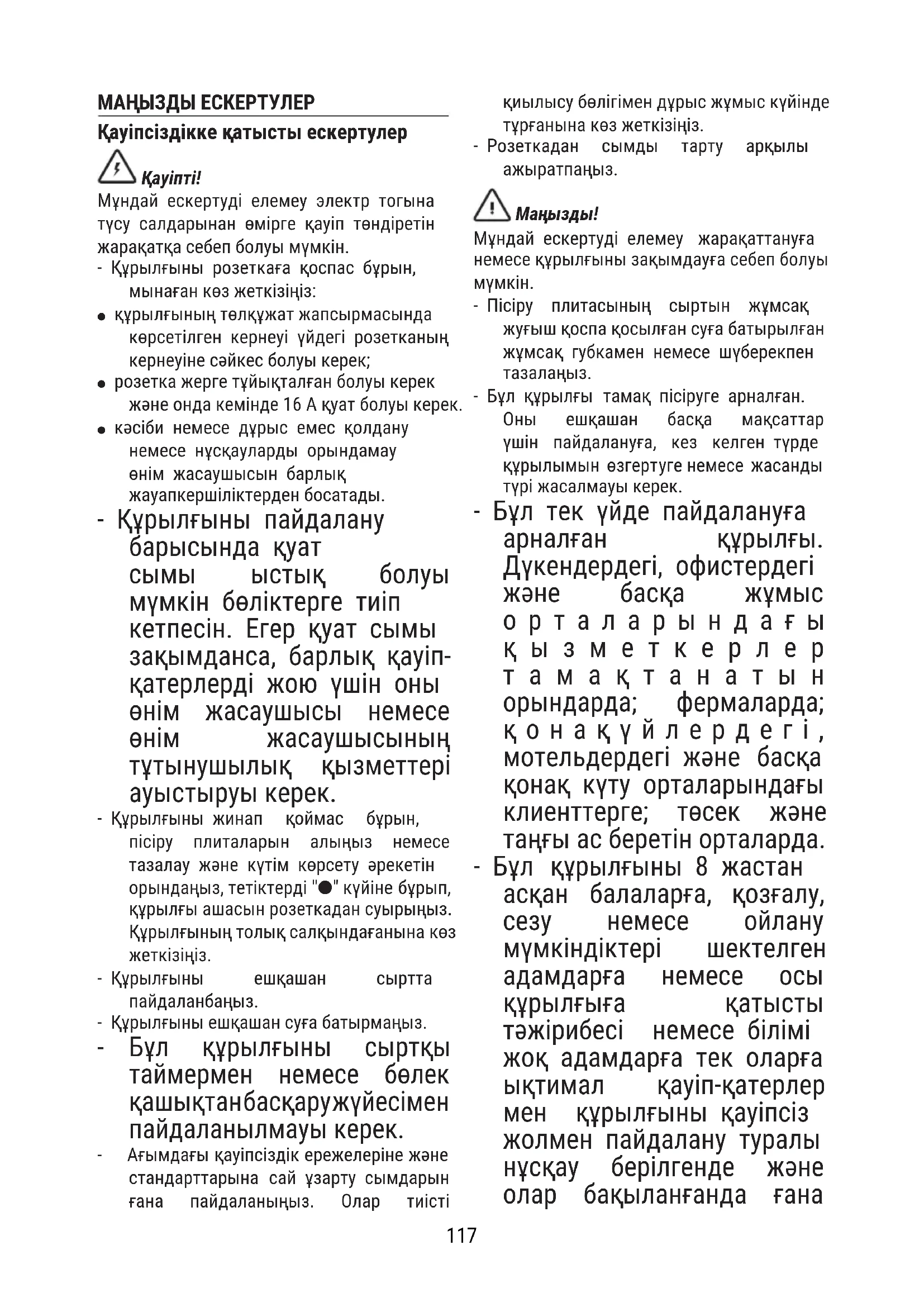 Мұндай ескертуді елемеу жарақаттануға немесе құрылғыны зақымдауға себеп болуы