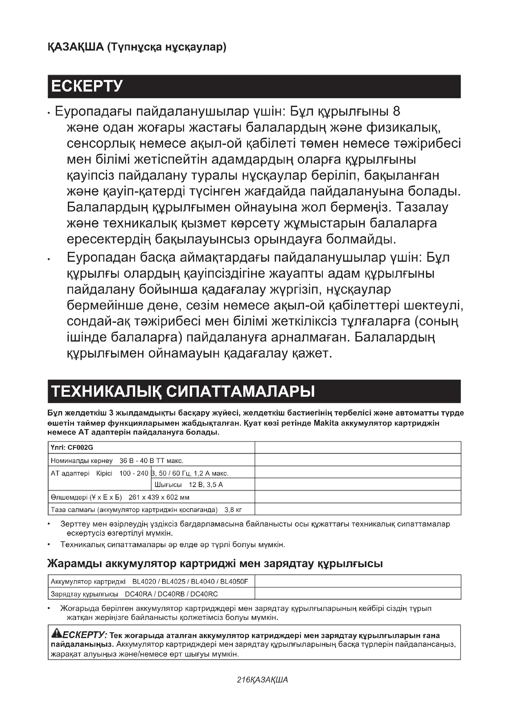 ПАЙДАЛАНУШЫ НҰСҚАУЛЫҒЫ CF002GZ MAKITA