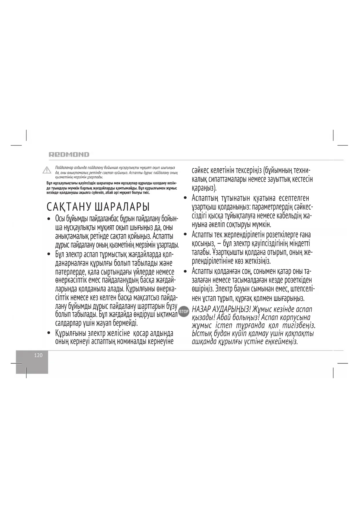 ПАЙДАЛАНУШЫ НҰСҚАУЛЫҒЫ RKM124E Redmond