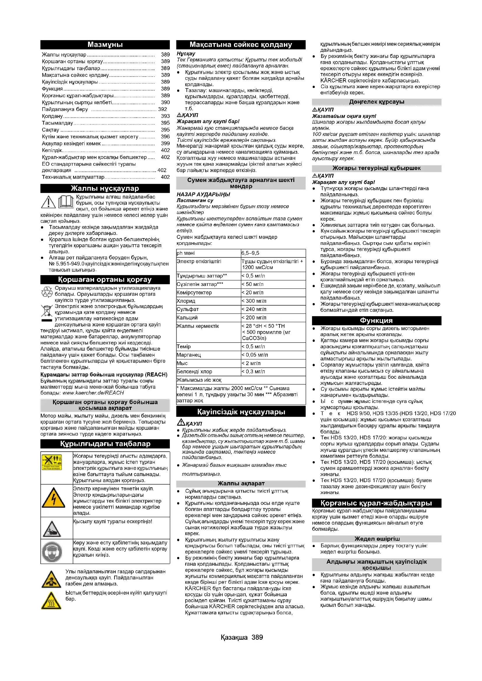 ПАЙДАЛАНУШЫ НҰСҚАУЛЫҒЫ HDS 950 De Tr1 Kärcher