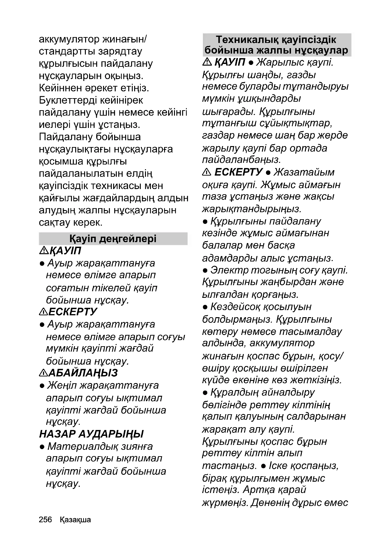 ● Ауыр жарақаттануға немесе өлімге апарып соғуы мүмкін қауіпті жағдай бойынша нұсқау. 몇 АБАЙЛАҢЫЗ ● Жеңіл жарақаттануға апарып соғуы ықтимал қауіпті жағдай бойынша