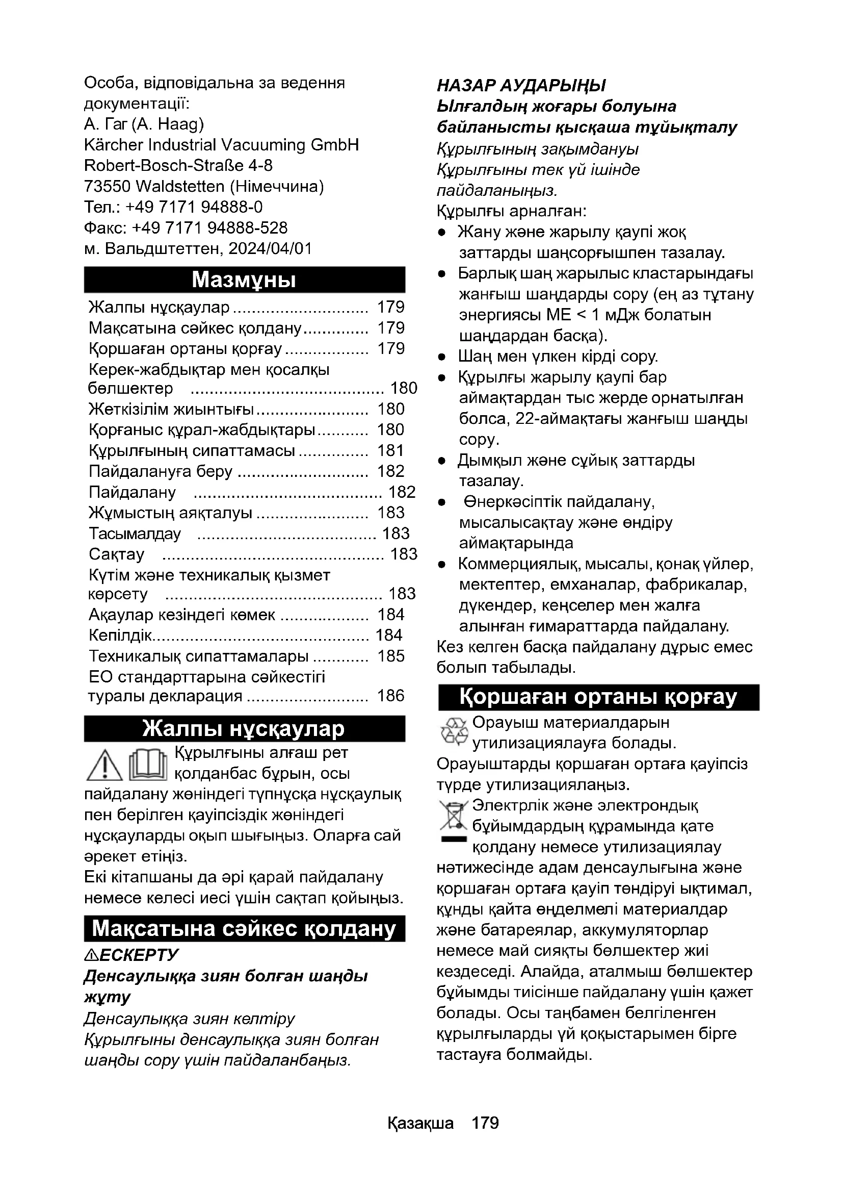 ПАЙДАЛАНУШЫ НҰСҚАУЛЫҒЫ IVR 50242 Sc Kärcher
