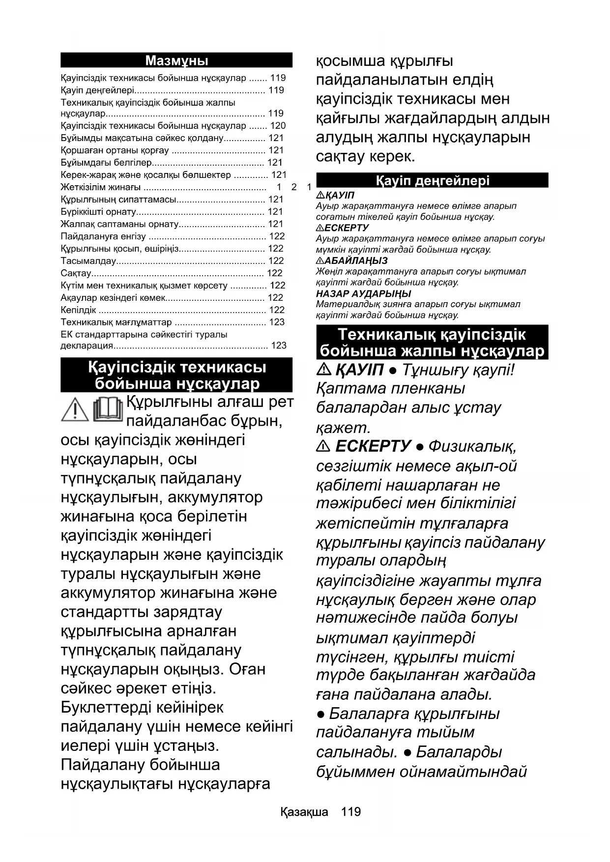 - Техникалық қауіпсіздік бойынша жалпы нұсқаулар p. 119