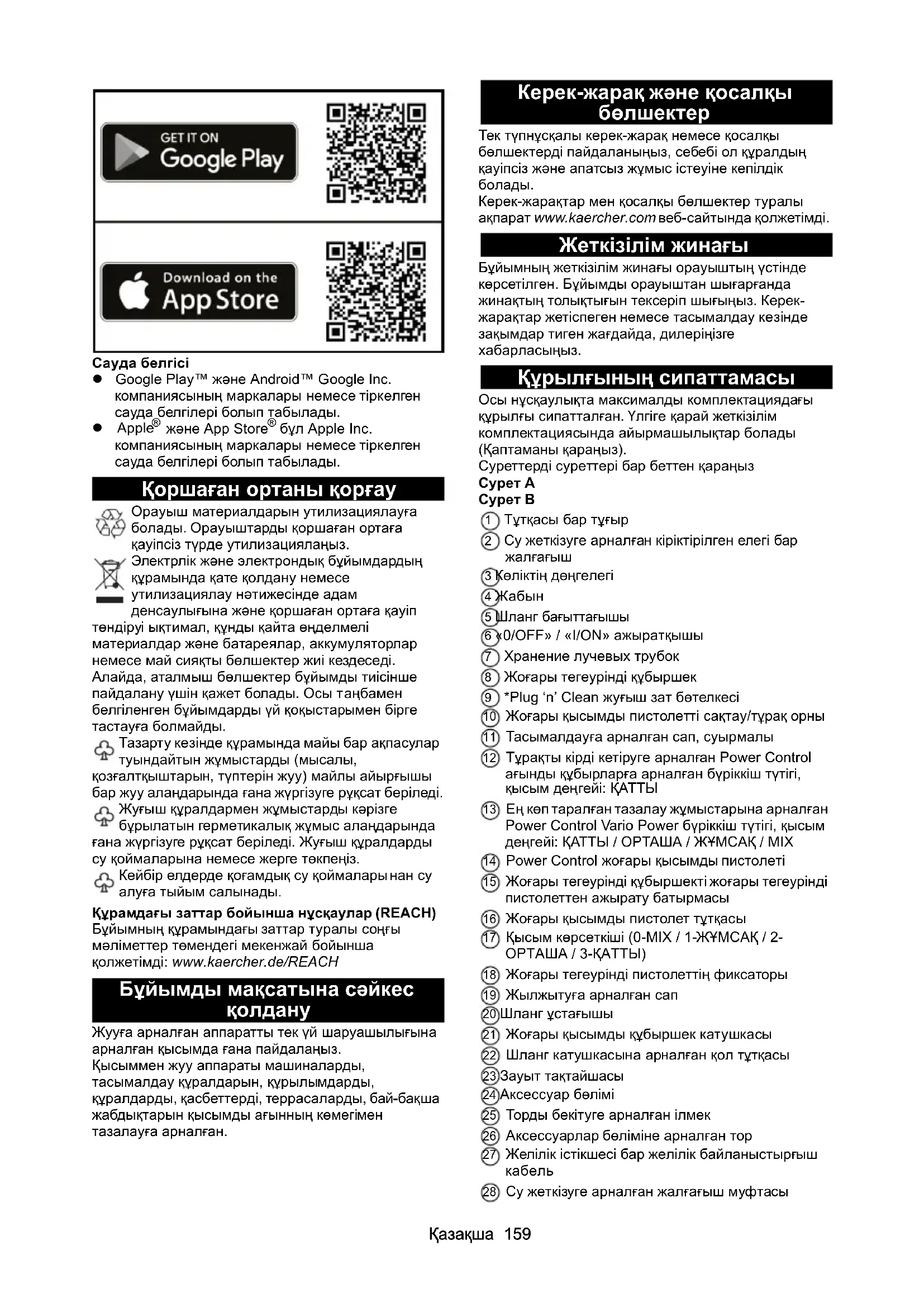 • KÄRCHER Үй жəне бақша қосымшасы p. 158