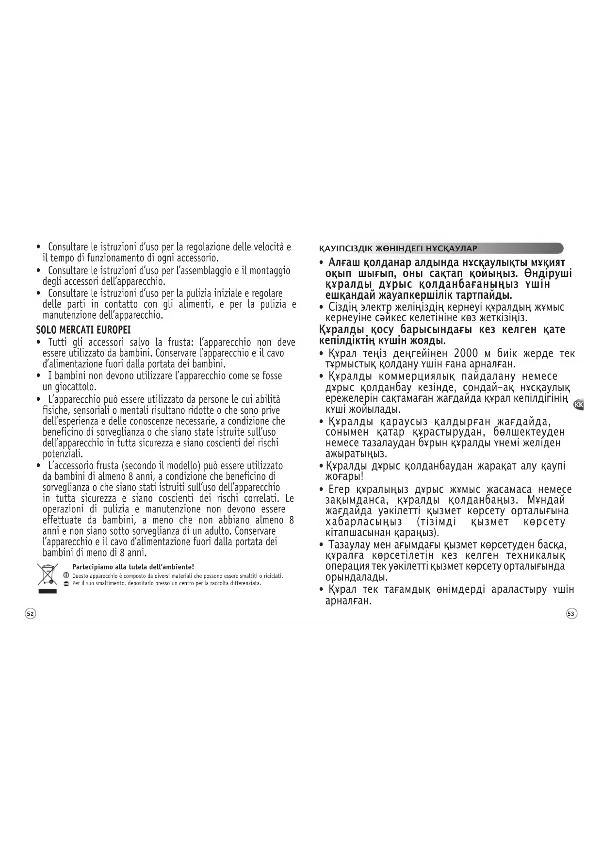 - 8 жастағы және одан үлкен балалар тек ересектердің қадағалауымен немесе құралды қауіпсіз қолдануға қатысты және оны қолдану барысында туындайтын қауіп-қатерлерді түсіндіретін нұсқаулармен таныс болғаннан кейін ғана бұлғағыш-саптаманы (үлгісіне қарай) қолдануына болады. Тазалау мен техникалық қызмет көрсету 8 жастан үлкен балалармен тек ересектердің қадағалауымен орындалуы қажет. Құралды және оның сымын 8 жастан төменгі балалардың қолы жетпейтін жерге