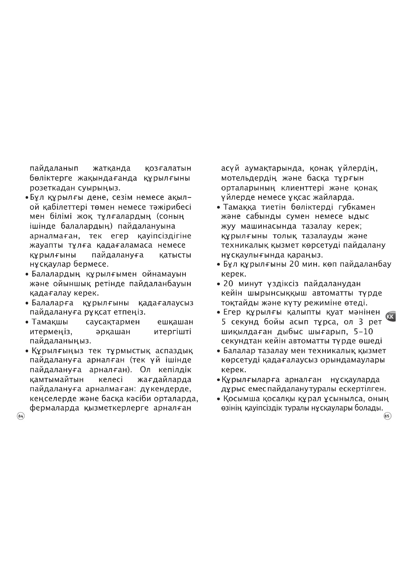 - Балаларға құрылғыны қадағалаусыз пайдалануға рұқсат етпеңіз.