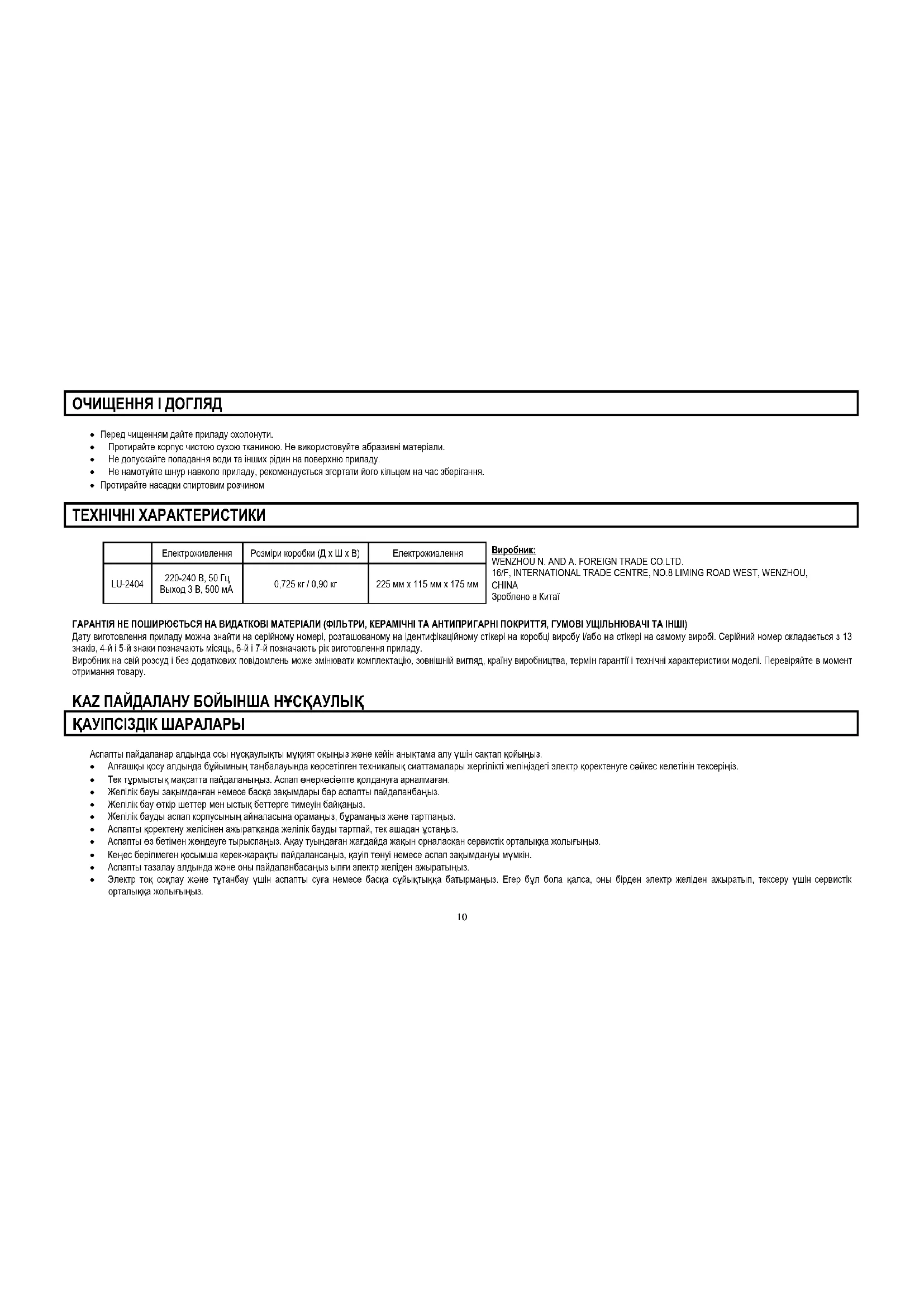 ПАЙДАЛАНУШЫ НҰСҚАУЛЫҒЫ LU2404 LUMME