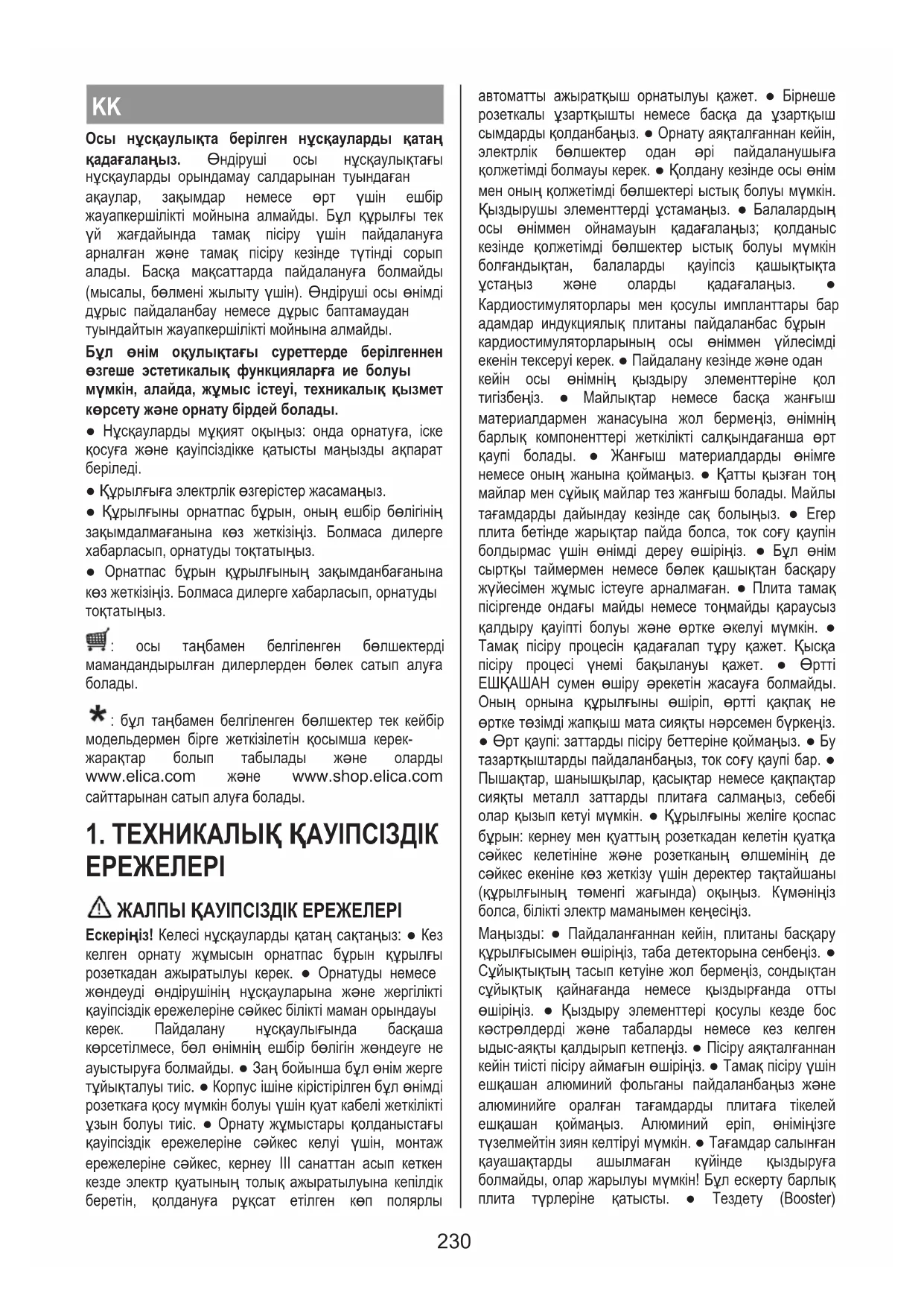 ЖҰМЫСТЫ БАСТАМАС БҰРЫН БІЛУІҢІЗ КЕРЕК НӘРСЕЛЕР Осы плитаның барлық функциялары ең қатаң қауіпсіздік ережелеріне сай болатындай етіп жасалған. Осыған байланысты: