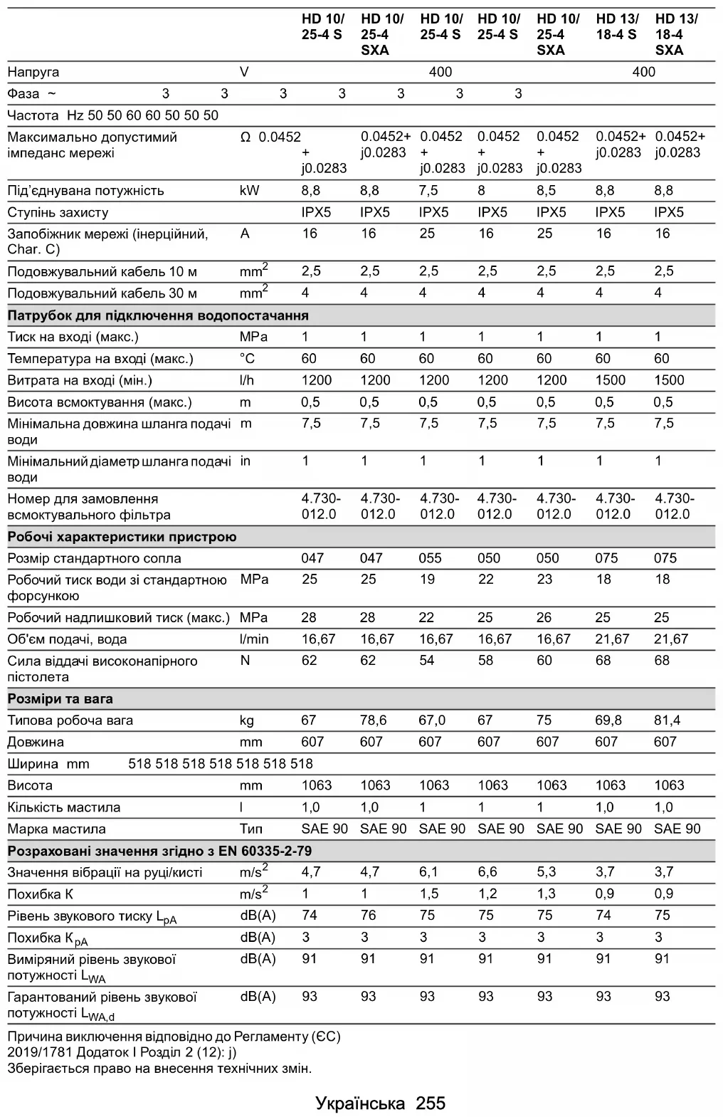 dB(A)91919191919191 кепілдік берілген дыбыс қуатының деңгейі L WA,d dB(A)93939393939393 HD 9/ 20-4 S HD 9/ 20-4 SX Plus HD 9/ 20-4 SXA HD 10/ 21-4 S HD 10/ 21-4 SX Plus HD 10/ 21-4 SXA HD 10/ 21-4 S HD 10/ 25-4 S HD 10/ 25-4 SXA HD 10/ 25-4 S HD 10/ 25-4 S HD 10/ 25-4 SXA HD 13/ 18-4 S HD 13/ 18-4 SXA Экспорттық нұсқа Ел EU EU KAP KAP EU II EU EU Электр желісіне қосу Кернеу V 400 400 220 440-460 230 400 400 Фаза ~ 3333333 Жиілік Hz 50 50 60 60 50 50 50 Желінің максимал қолжетімді толық кедергісі Ω 0.0452