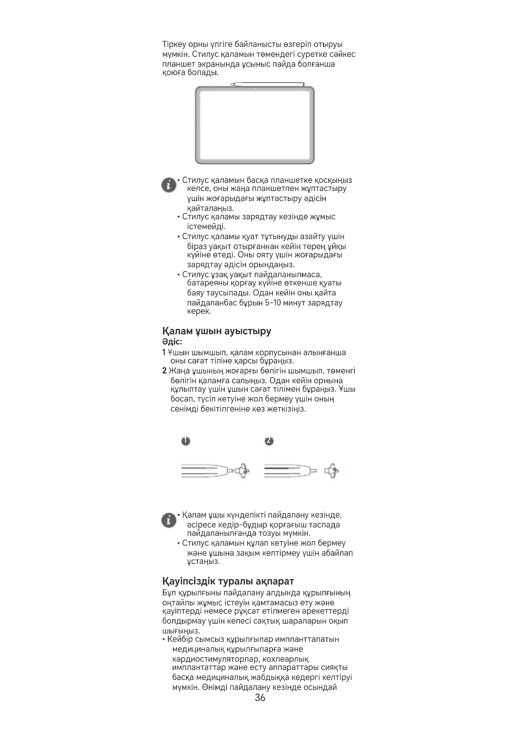 - Стилус қаламын құлап кетуіне жол бермеу және ұшына зақым келтірмеу үшін абайлап