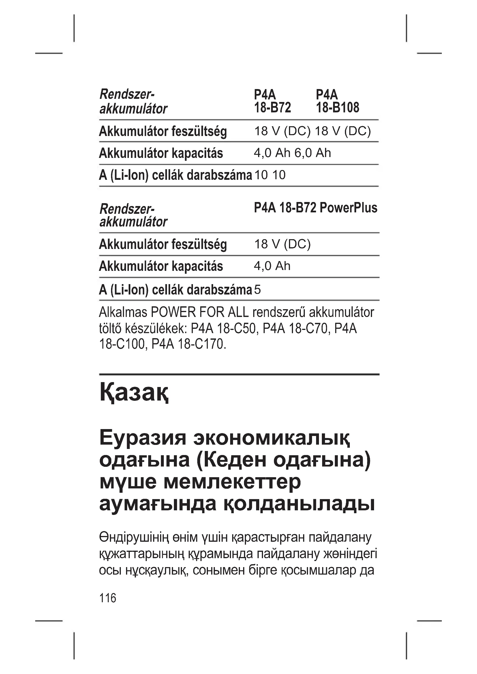 Осы қауіпсіздік техникасының нұсқаулары тек POWER FOR ALL жүйелерінің 18 В литий-иондық аккумуляторлары үшін жарамды.