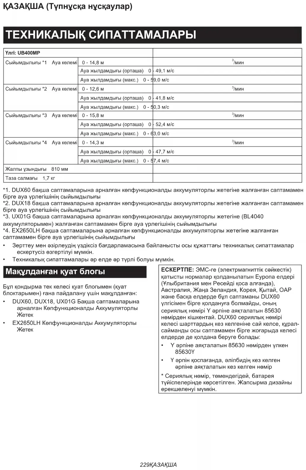 ПАЙДАЛАНУШЫ НҰСҚАУЛЫҒЫ UB400MP MAKITA