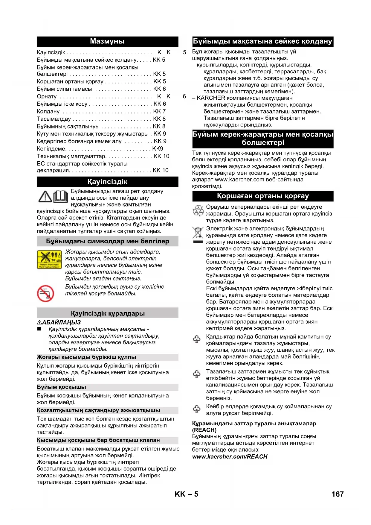 ПАЙДАЛАНУШЫ НҰСҚАУЛЫҒЫ K 6 Special Kärcher