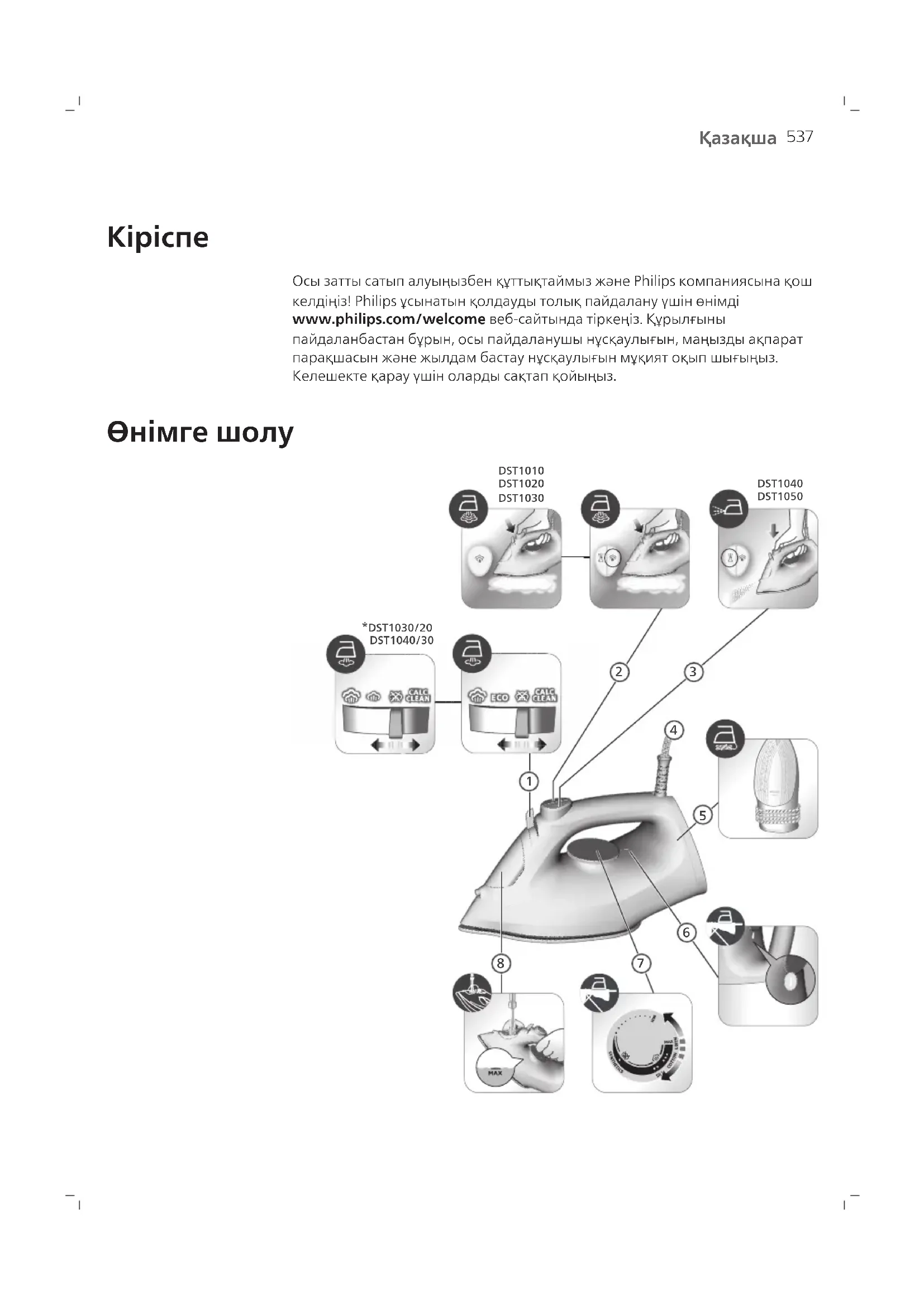 1000 Series DST1040 - темір PHILIPS - Тегін пайдаланушы нұсқаулығы