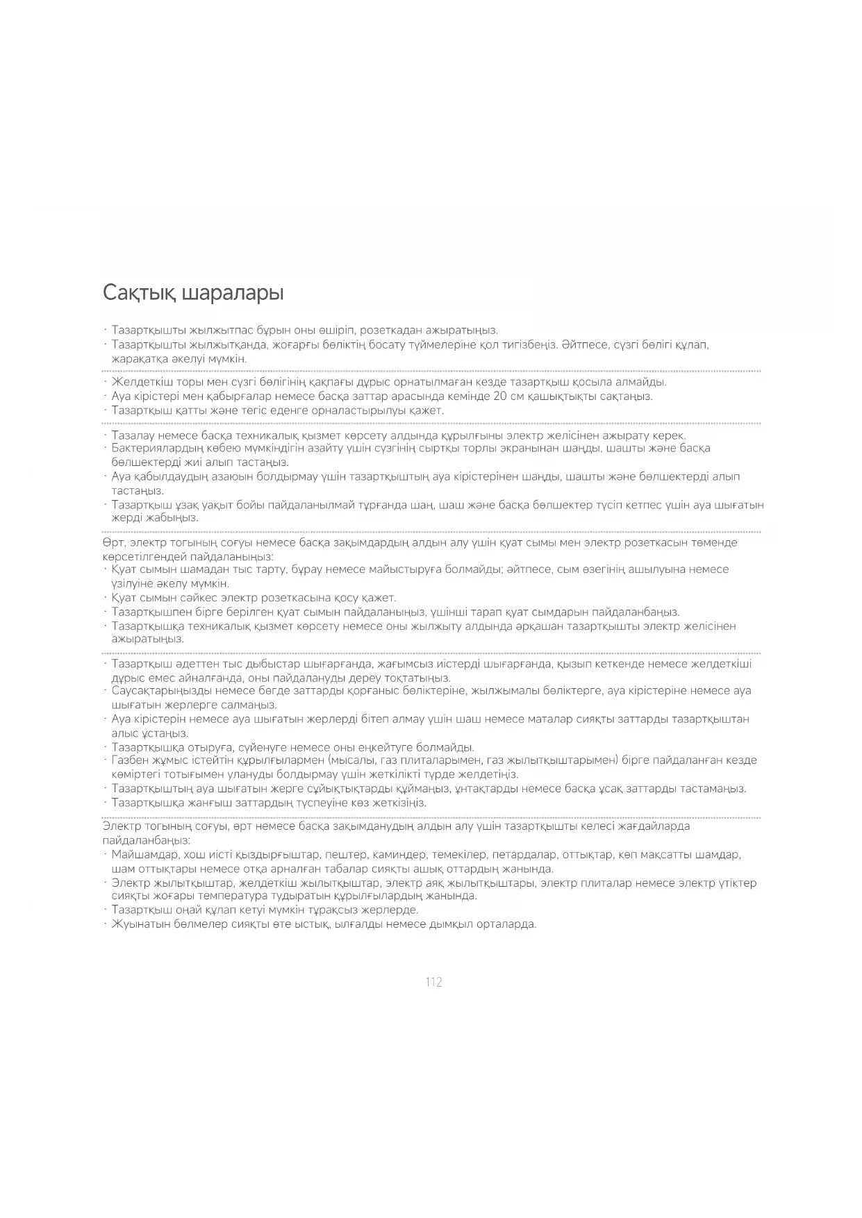 - Тазартқышқатехникалыққызметкөрсетунемесеоныжылжытуалдындаәрқашантазартқыштыэлектржелісінен ажыратыңыз.