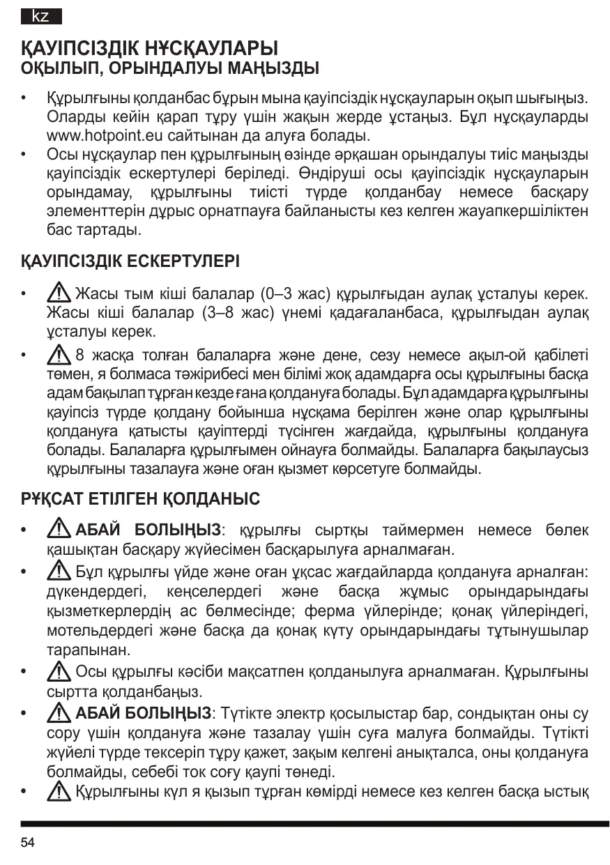 ПАЙДАЛАНУШЫ НҰСҚАУЛЫҒЫ SL M07 A3M O HOTPOINT
