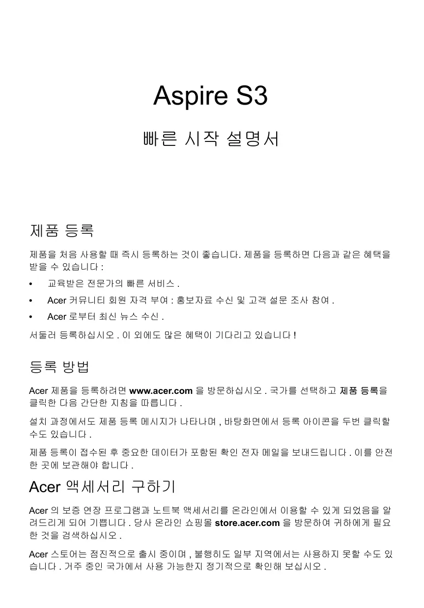 ASPIRE S3-331 - 노트북 ACER - 무료 사용 설명서